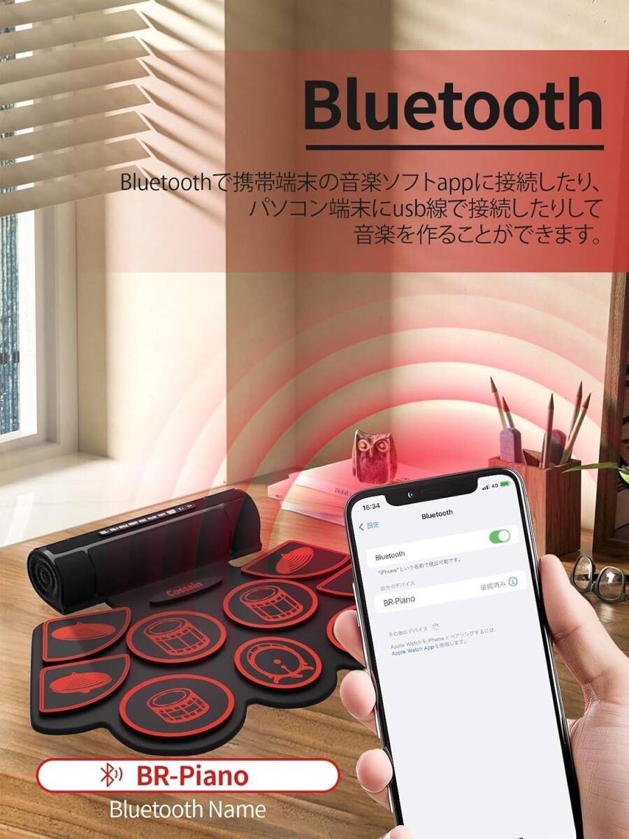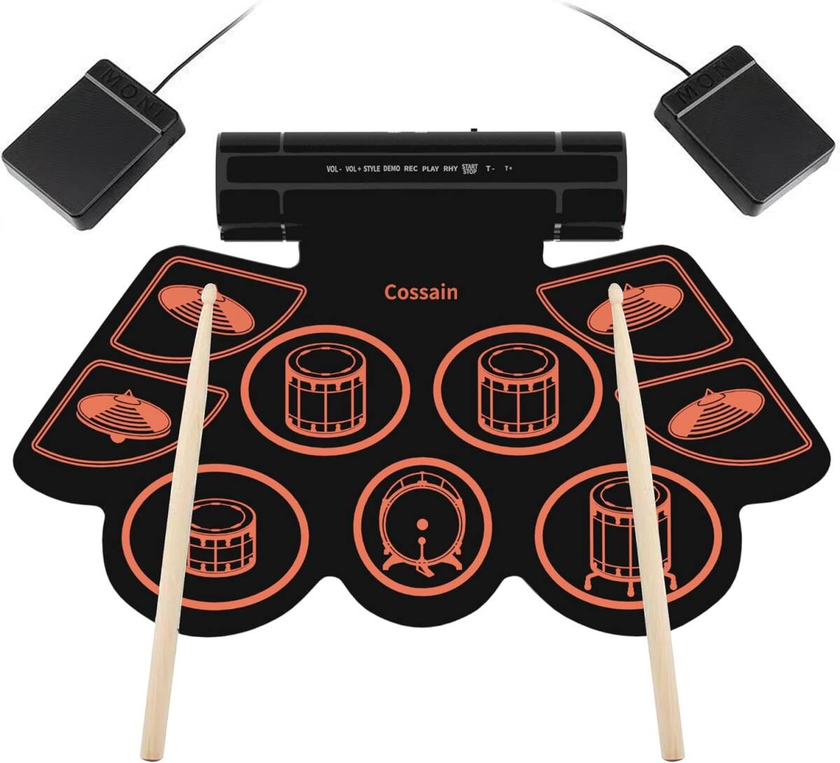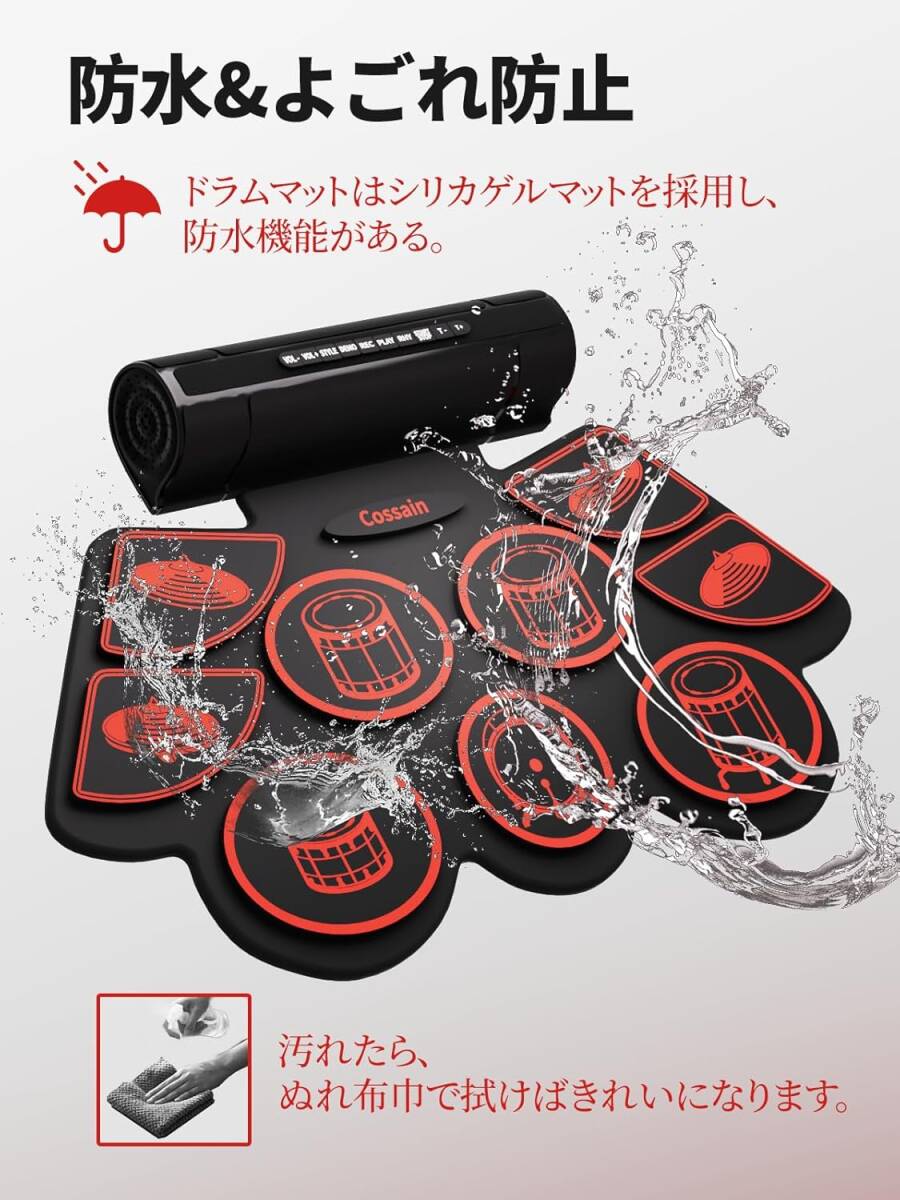 レッド色 電子ドラム 折りたたみ 小さく畳める ロール 子供向け 初心者向け セット 持ち運び 9パッド ハイハット付き