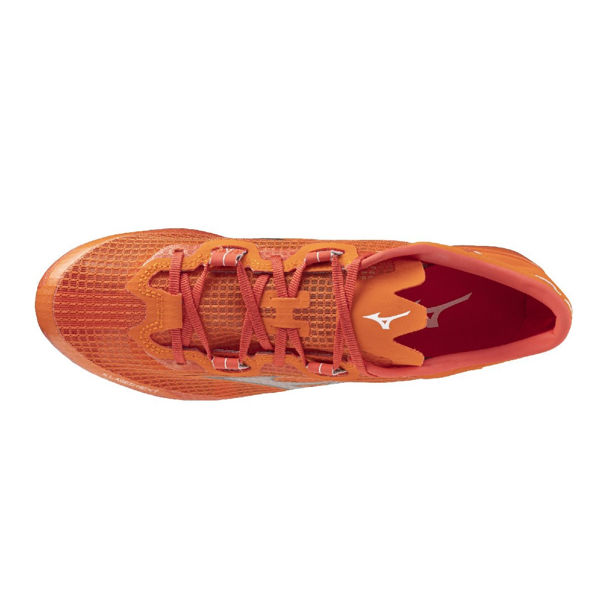 レーザー光線のようなコーナーリングを。ロングスプリント向け。</br<<br>品番:U1GA230311<br>カラー:オレンジ×シルバー<br>サイズ:26.0cm<br>甲材:合成繊維×人工皮革<br>底材:合成底<br>約160g(このスパイクの27.0cmサイズの片方の重さ)<br>オールウェザートラック専用/短距離用<br>スパイクピン:取替式:8ZA303(8mm)<br>2E相当