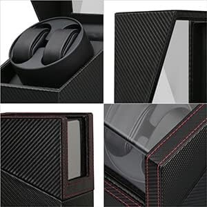 炭素繊維 レザ-135T ワインディングマシーン ウォッチワインダー ワインダー 自動巻き時計ワインディングマシーン 日本製 マブチモーター 自動巻き上げ機 収納ケース 2本巻き (炭素繊維 レザ-135T)