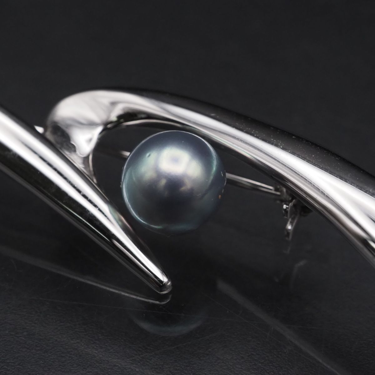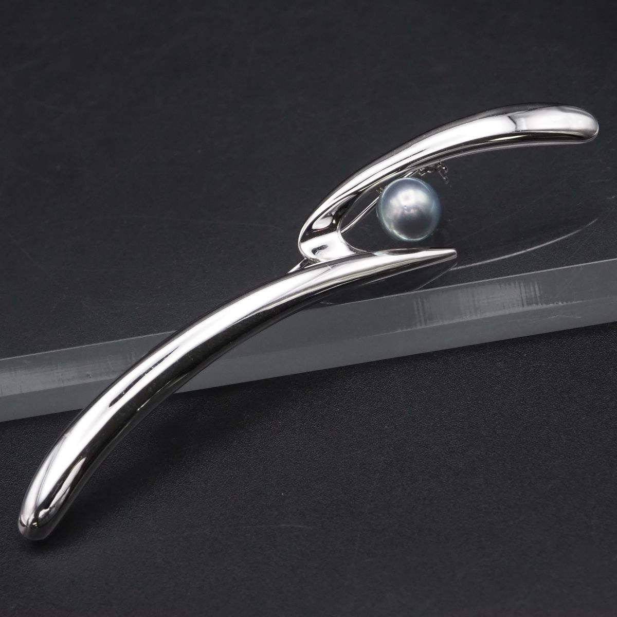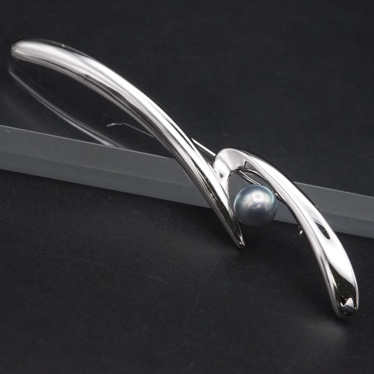 F611 本真珠 8.7mm珠 パール SILVER刻印 ブローチ ブルー系カラー デザイン シルバー コサージュ 6月誕生石
