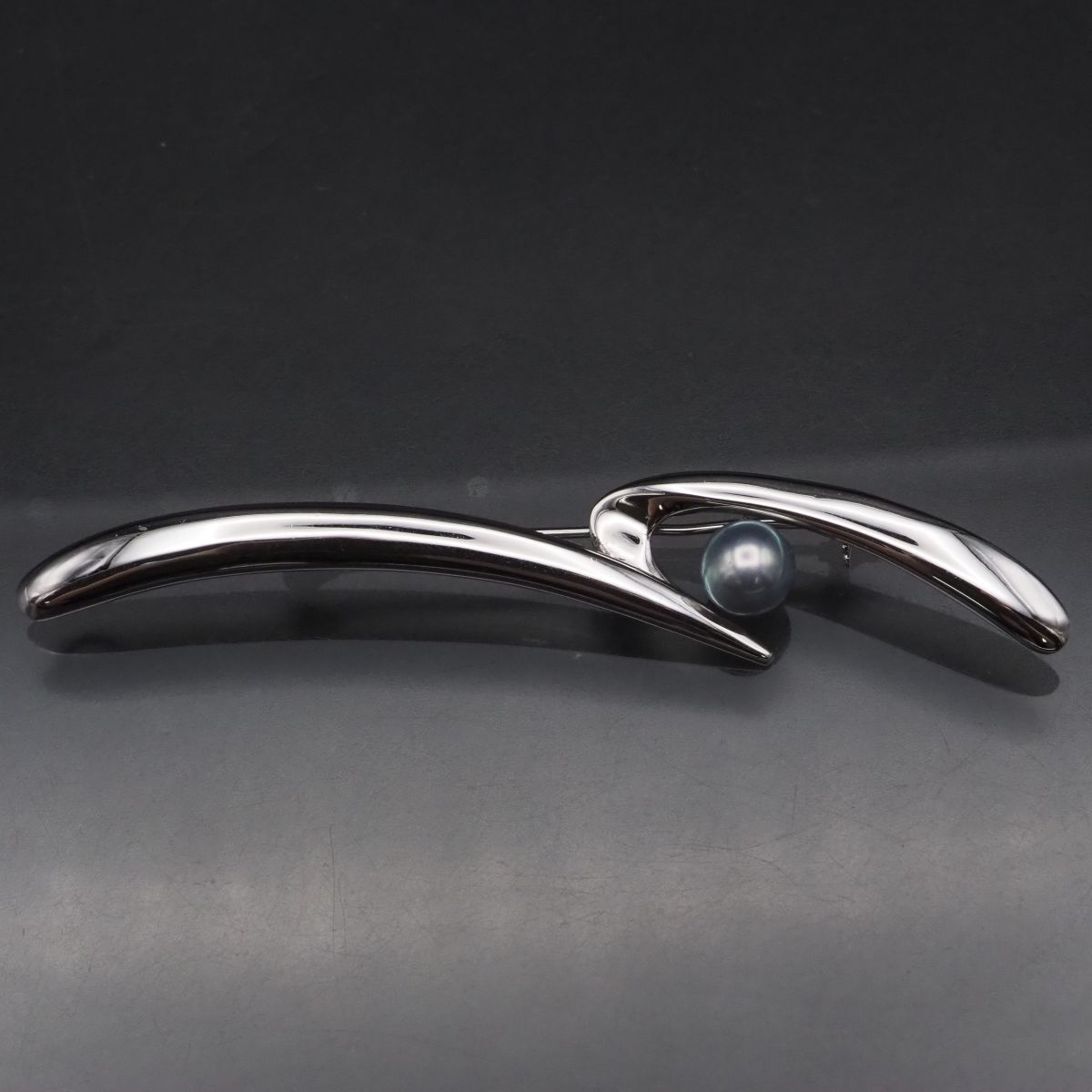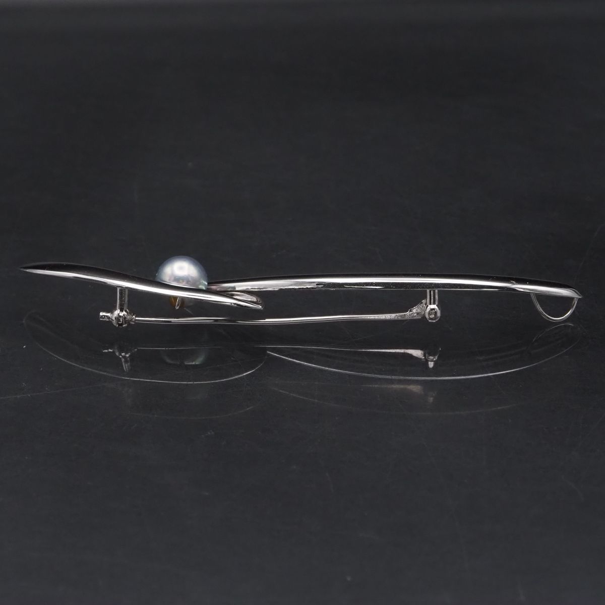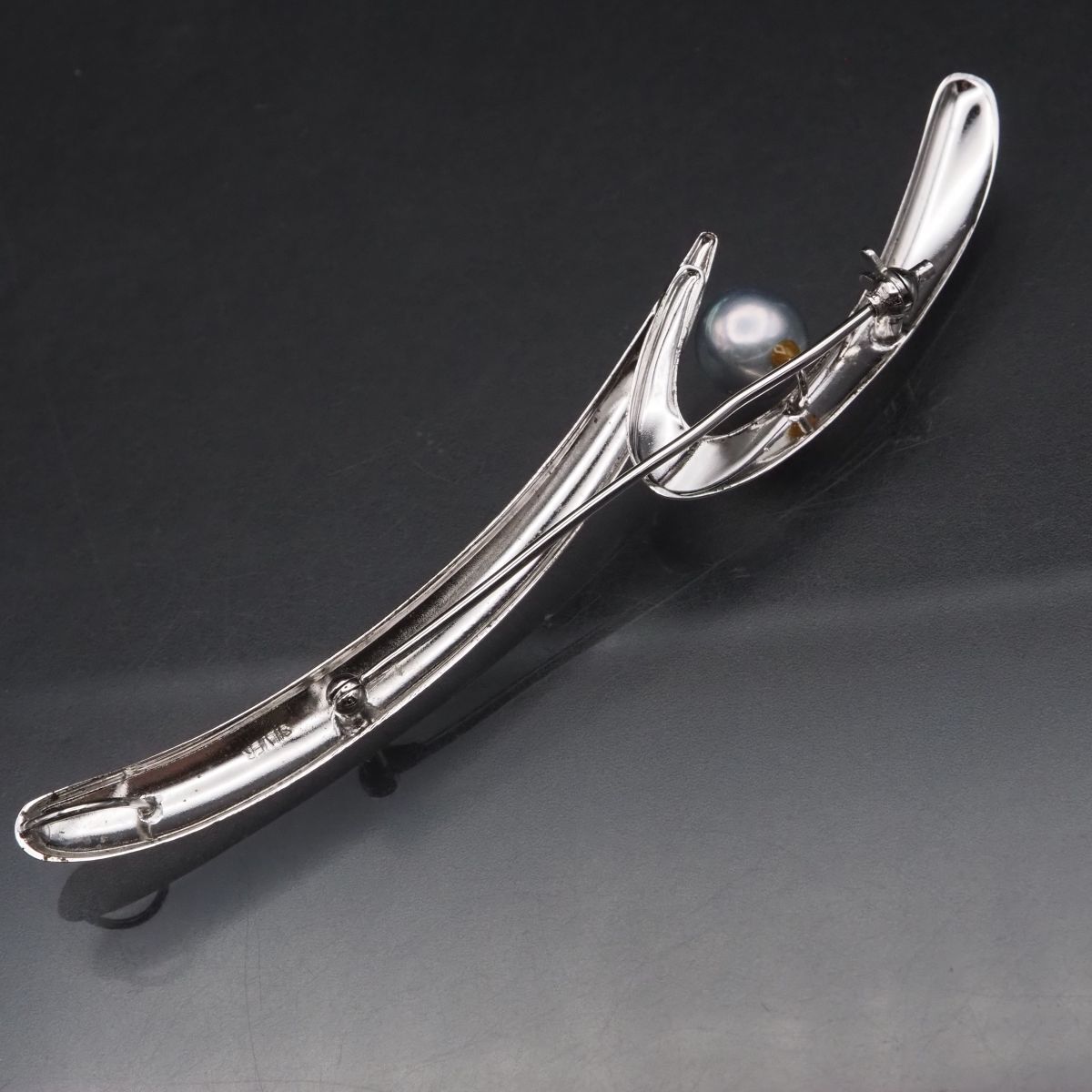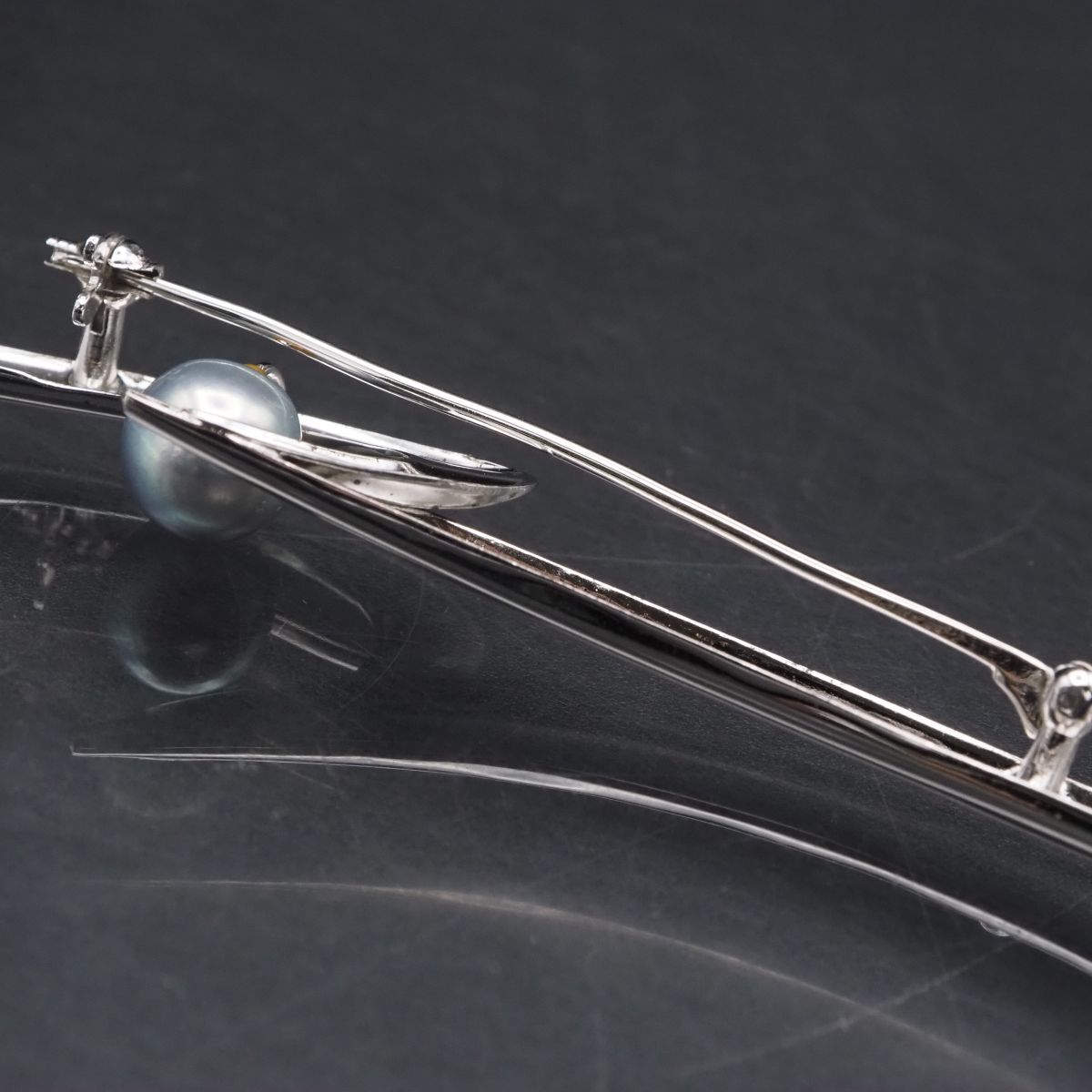 F611 本真珠 8.7mm珠 パール SILVER刻印 ブローチ ブルー系カラー デザイン シルバー コサージュ 6月誕生石