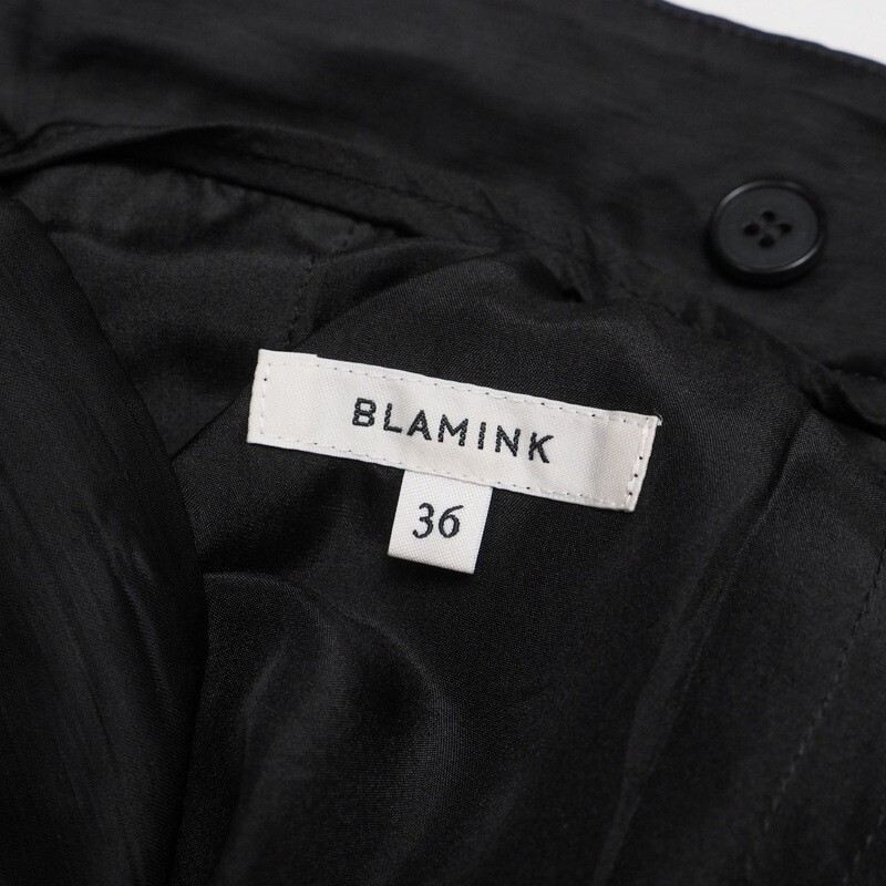 MI0884=ブラミンク/BLAMINK*リネン混*光沢感*ワイドパンツ*タックパンツ*日本製*サイズ36*ブラック | |||