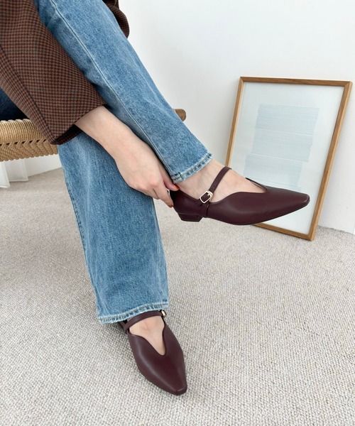 キーワード:パンプス ストラップ フラットシューズ ポインテッドトゥ ローヒール