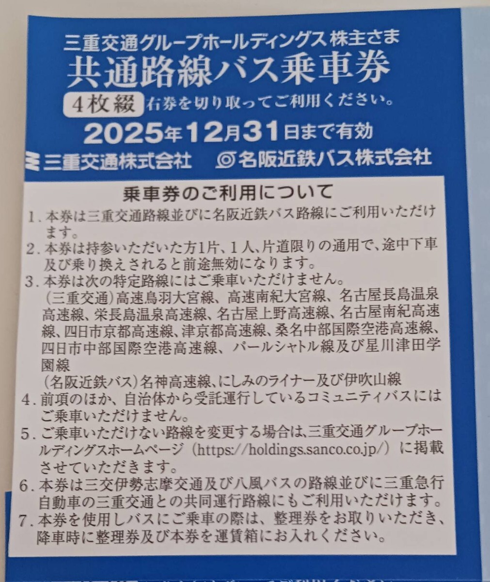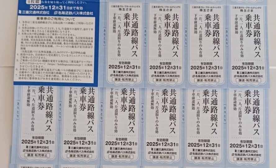 三重交通株主優待 共通路線バス乗車券 10枚セットです