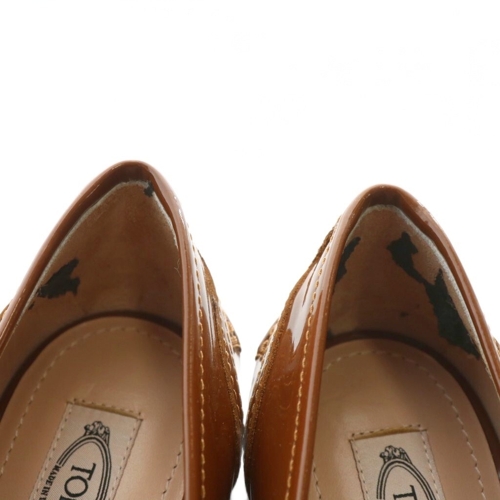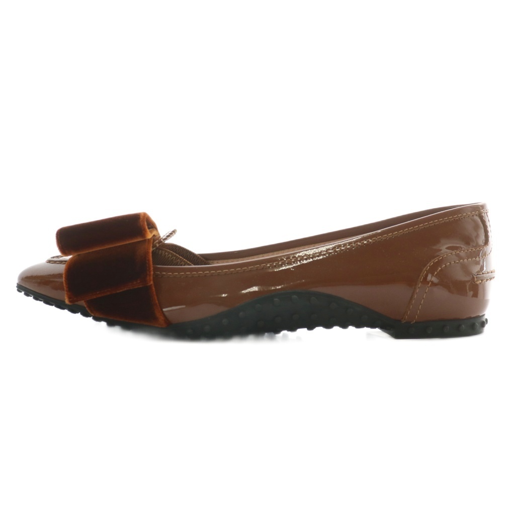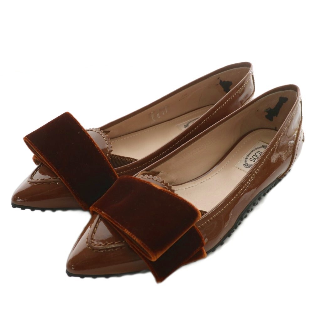 トッズ TOD'S パンプス フラット エナメル ベロア ポインテッドトゥ 38 25cm 茶色 ブラウン /XZ ■GY19 レディース