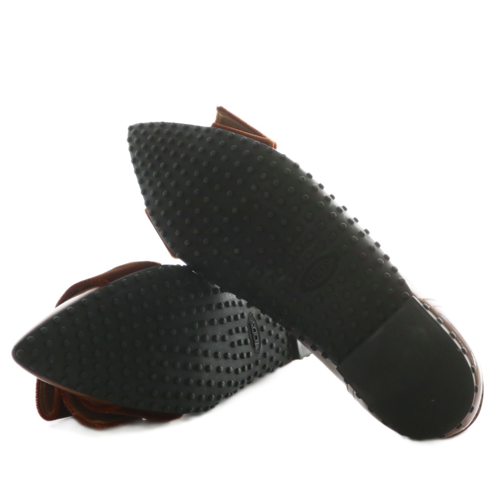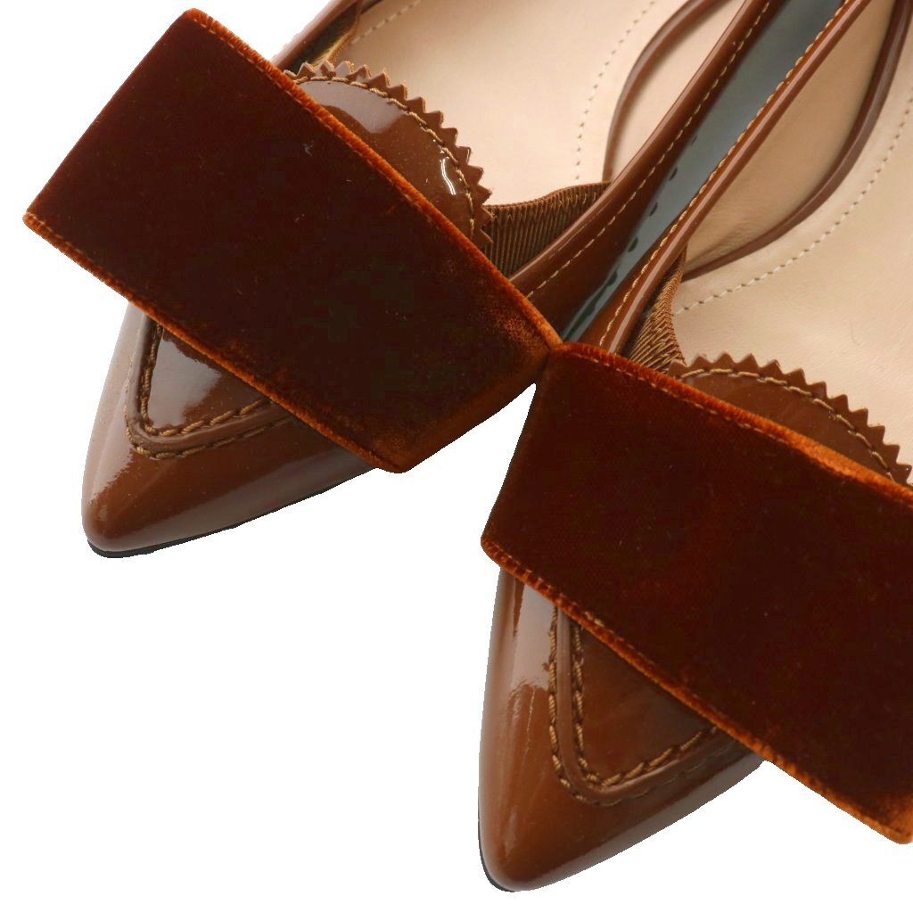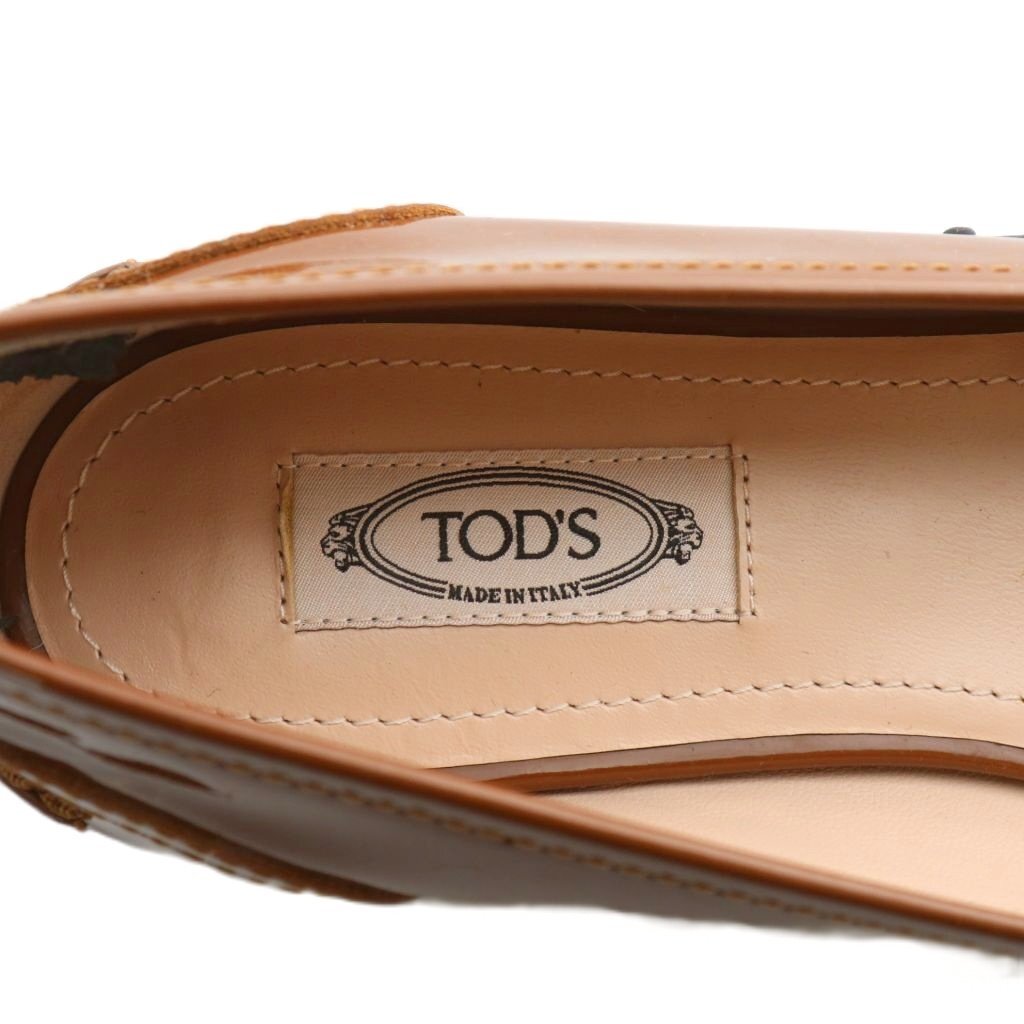 トッズ TOD'S パンプス フラット エナメル ベロア ポインテッドトゥ 38 25cm 茶色 ブラウン /XZ ■GY19 レディース