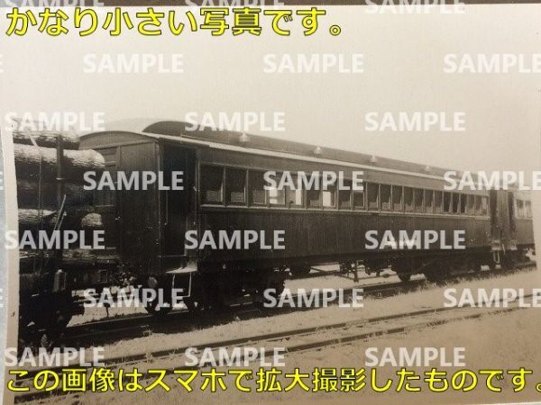 (ダブルルーフ木造客車。車体側面に「サハ26001 長ナノ 吉田分所通勤車」。前は原木を積んだチサ100?、後ろは同形車。