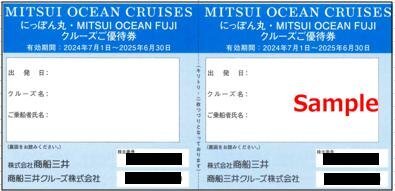 商船三井客船 株主優待券(フェリーサービスクーポン 5000円)※にっぽん丸クルーズ優待券4枚付きです。 ※『商品名の枚数/冊数/セット数』=【販売価格】です。 有効期限:2025年12月31日 ※中止等の場合の返金には一切対応致しかねますので、予めご了承下さい。 商品自体に記載のない詳細はお答え出来かねます。 使用方法は発行会社のホームページ等より事前にご確認をお願い致します。 ※お取引に関するご不明点につきましてはご注文前に必ずお問合せ下さい。 ※「お客様情報」「ご入金」の確認は『12時まで』で〆切とさせていただいております。 (〆切時間後の対応は「弊社翌営業日」となります) ※弊社休業日・営業時間外のご入金確認・発送は出来かねます。(ストア情報を必ずご確認下さい) ※『発送時間の変更』は出来かねます。 日時指定の機能がない為、到着予定は配送会社に事前にご確認下さい。 |