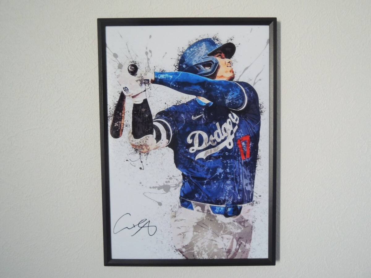 A4 額付き ポスター 大谷翔平 バッター 17 バッティング Shohei Ohtani ドジャース アート