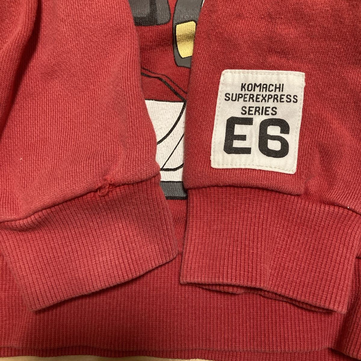 - デザイン: 赤色のトレーナー、前面に「KOMACHI」ロゴと新幹線のイラスト