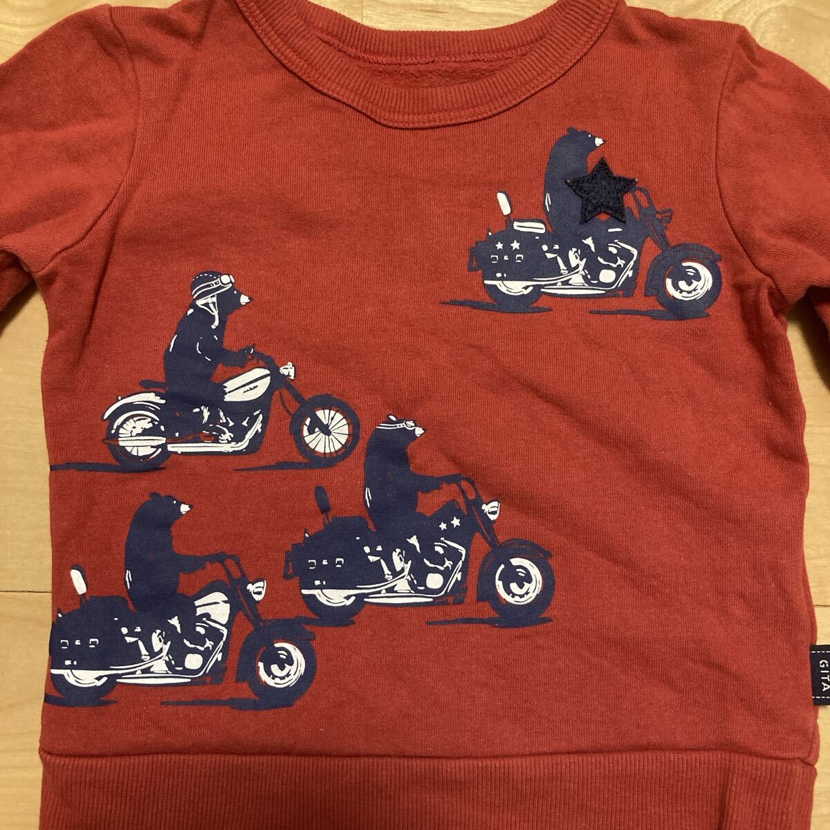 - デザイン: バイクのイラストがプリントされたトレーナー