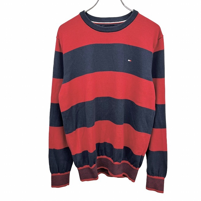 | 商品タイトル | トミーヒルフィガー TOMMY HILFIGER ニットTシャツ セーター ボーダー 長袖 丸首 裾リブ 綿100% S レッド 赤×紺 レディース(メンズ?) |
