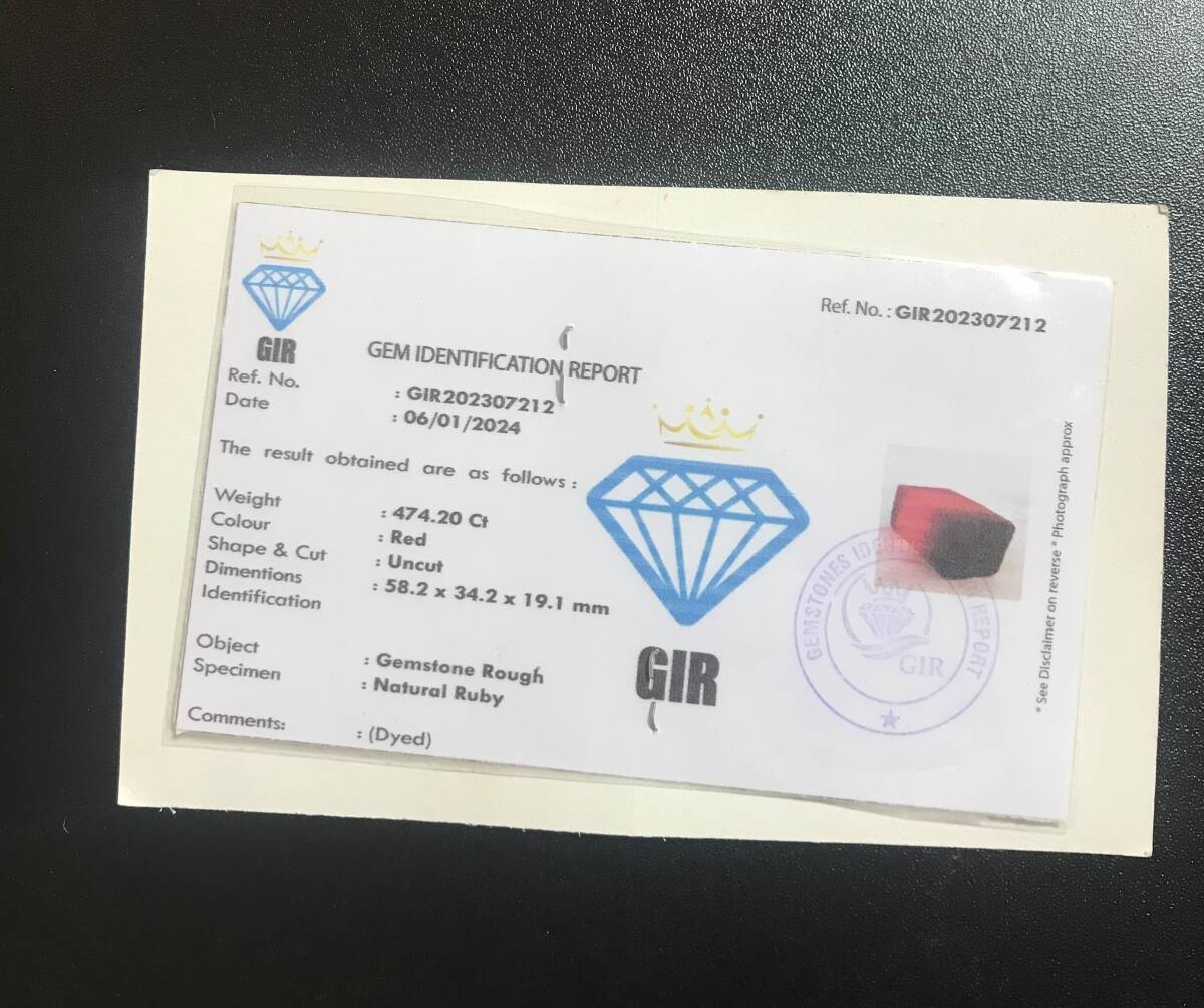 天然コランダム ルビー 474.20Ct ブロック 鑑別付き アフリカ産 原石 本物保証 ruby corundum 鉱物