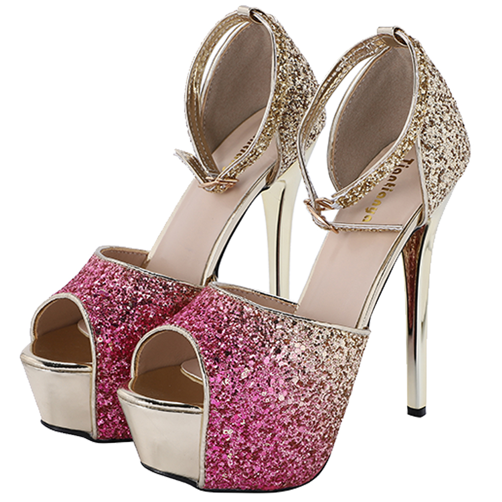 レディース ハイヒール スパンコール キラキラ キャバヒール アンクルストラップ ピンヒール オープントゥ サンダル (ピンク, 23.0cm(36))