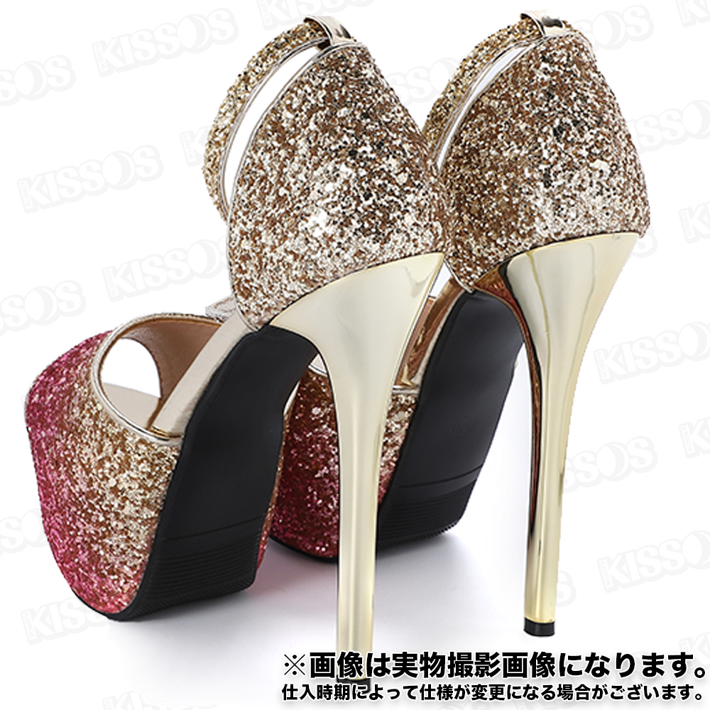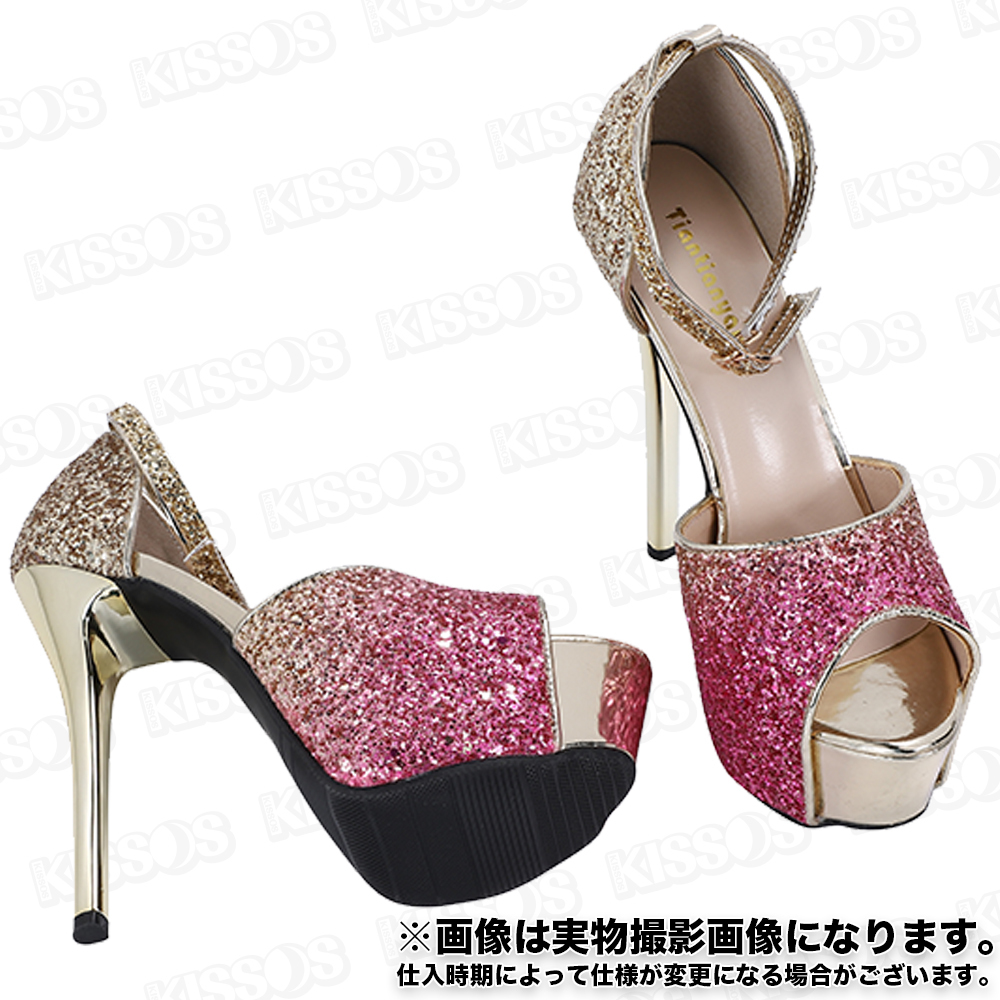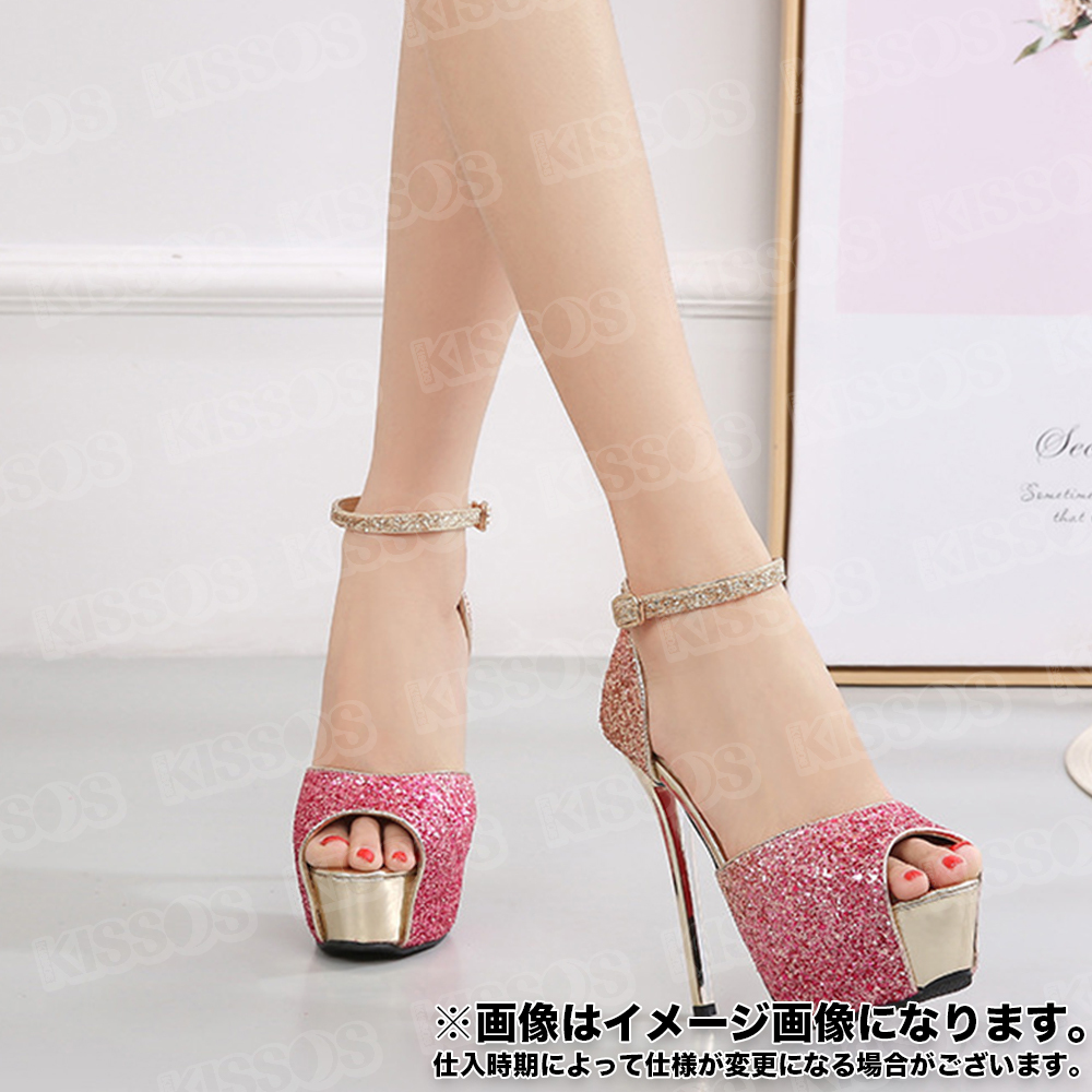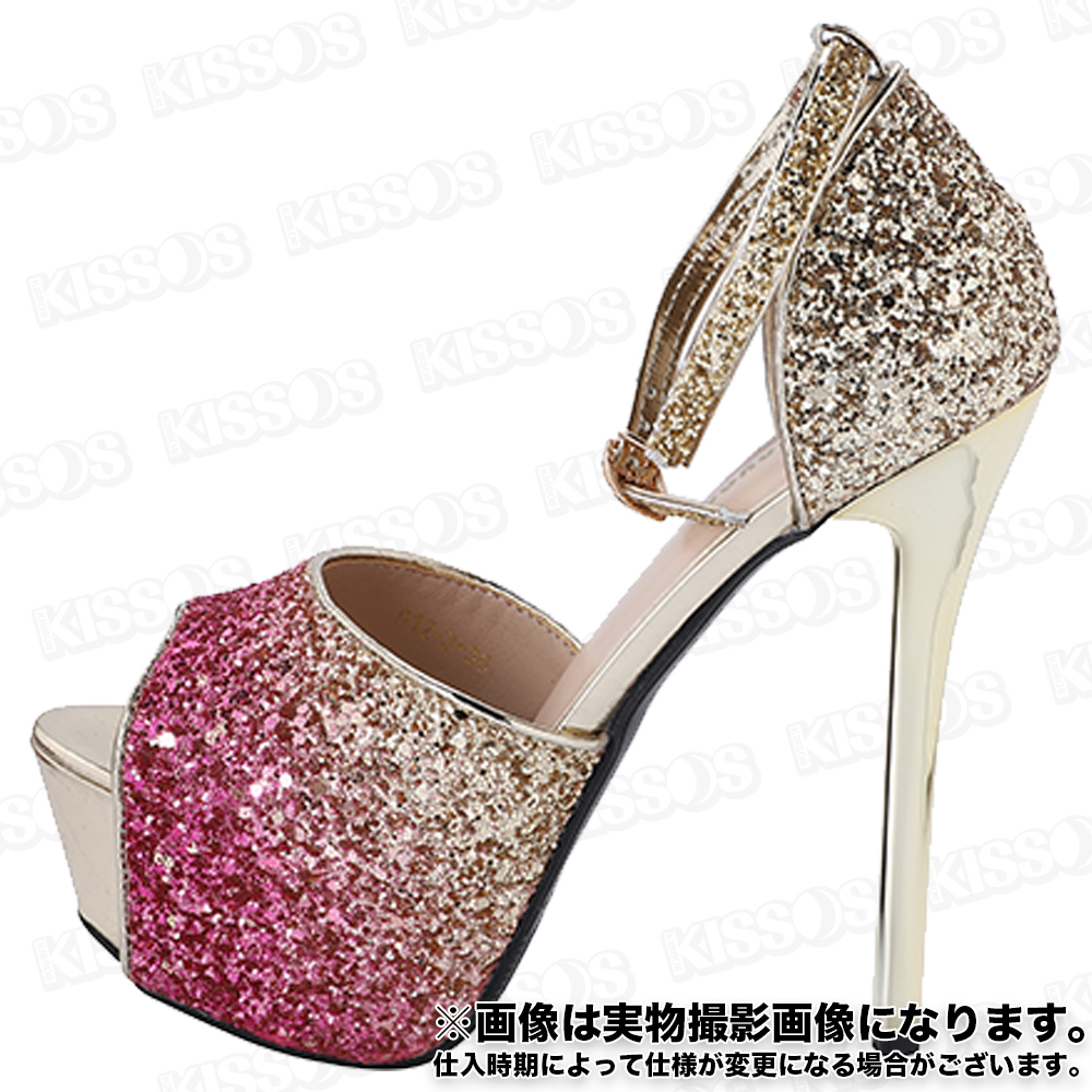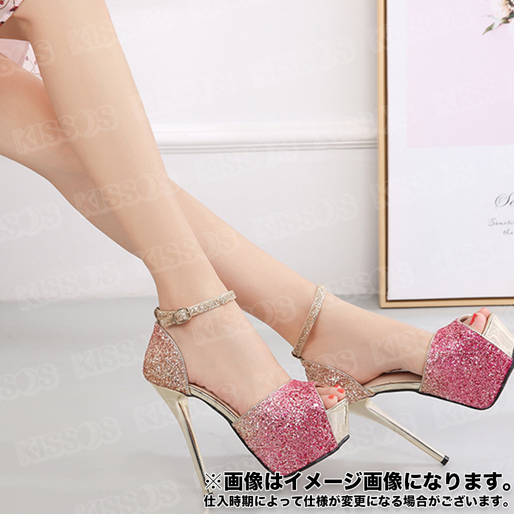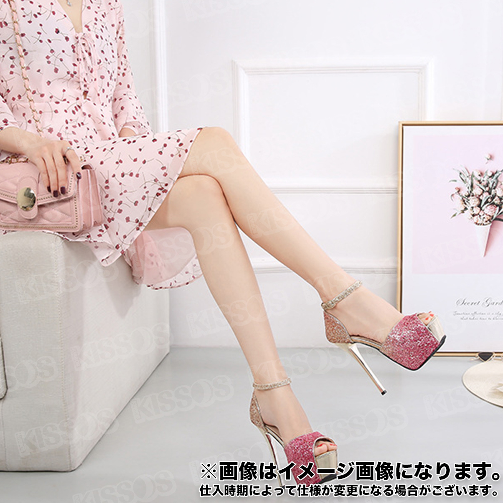 キッソス(KISSOS) レディース ハイヒール スパンコール キラキラ キャバヒール アンクルストラップ ピンヒール オープントゥ サンダル パンプス (ピンク, 23.0cm(36))
