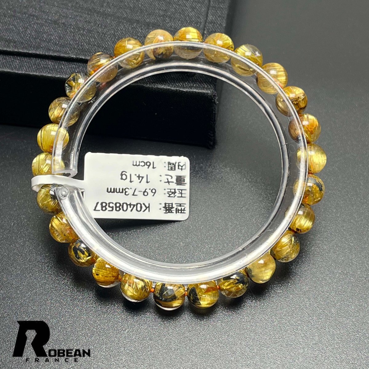 夢色 EU製 定価19万円★ROBEAN・太陽花タイチンルチル★黄金針水晶 金運 開運 ゴールド ブレスレット パワーストーン 6.9-7.3mm K0408587
