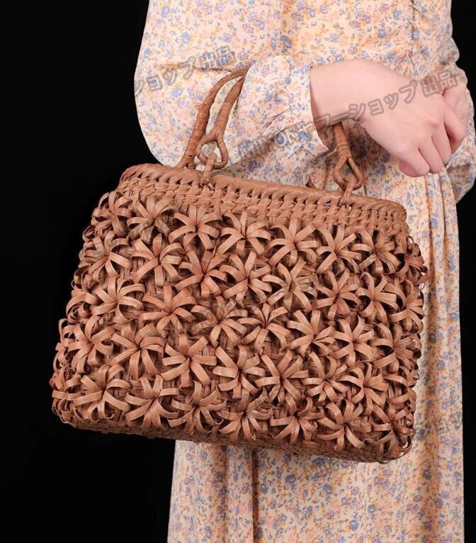 希少新品!極美品★高級UPハンドバック 職人手作り良品 山葡萄かごバッグ 手編み山葡萄籠バッグ バスケット籐かご lhw091