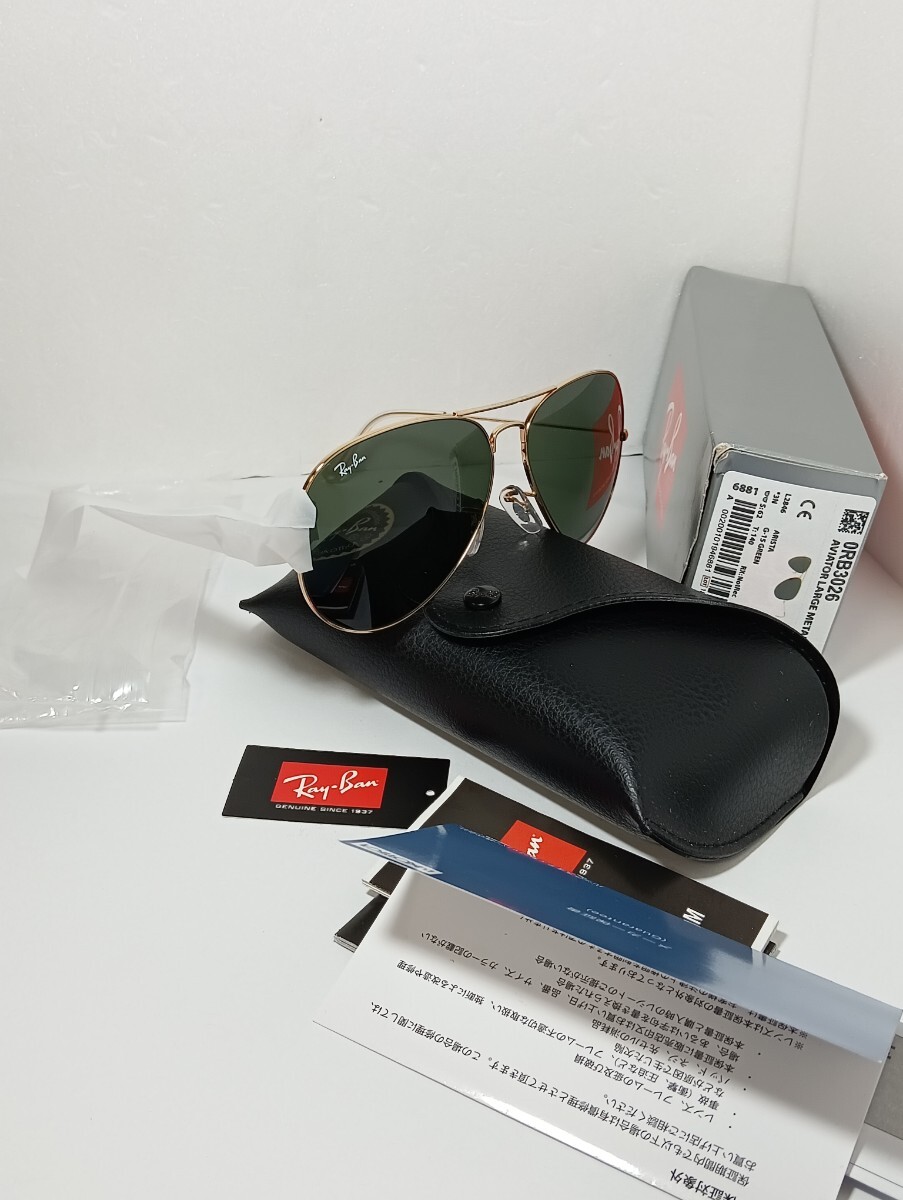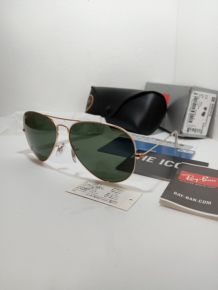 1円【未使用/箱付】Ray-Ban サングラス 0RB3026 アビエーター ラージメタルⅡ ポラライズドグリーン/アリスタゴールドフレーム