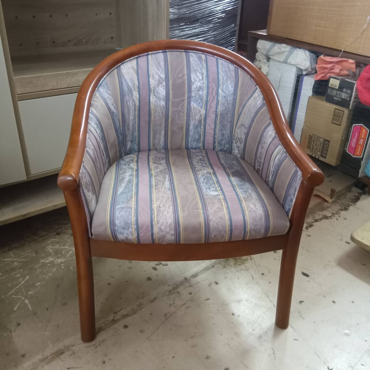 座面は広めでゆったりとしており、読書やお茶を楽しむパーソナルチェアとして最適です。ラウンジチェアとしてリビングに置けば、そこが一番心地よい特等席に。店舗什器としてお使いいただければ、一気に空間の格を上げてくれる存在感があります。職人のこだわりを感じさせる丁寧な作りで、長く愛用されてきたからこその「味」が魅力の一脚です。唯一無二の存在感を放つ、あなただけの特別な椅子をこの機会にぜひ。