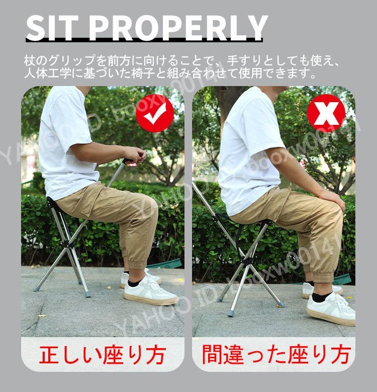 ステッキチェア いす 椅子 座れる杖 杖 折りたたみ 軽量 三脚 チェアー 椅子 イス ゴルフ 休憩 軽量 座れるステッキ 歩行補助杖 介護 3本脚