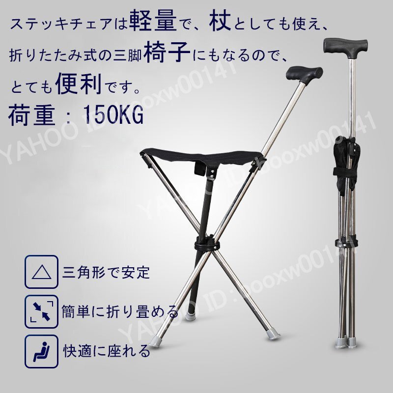 ステッキチェア いす 椅子 座れる杖 杖 折りたたみ 軽量 三脚 チェアー 椅子 イス ゴルフ 座れるステッキ 歩行補助杖 介護 3本脚 hhw0022