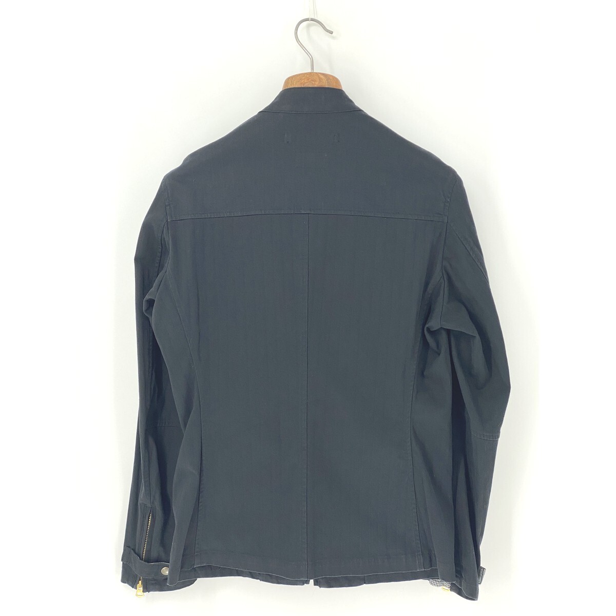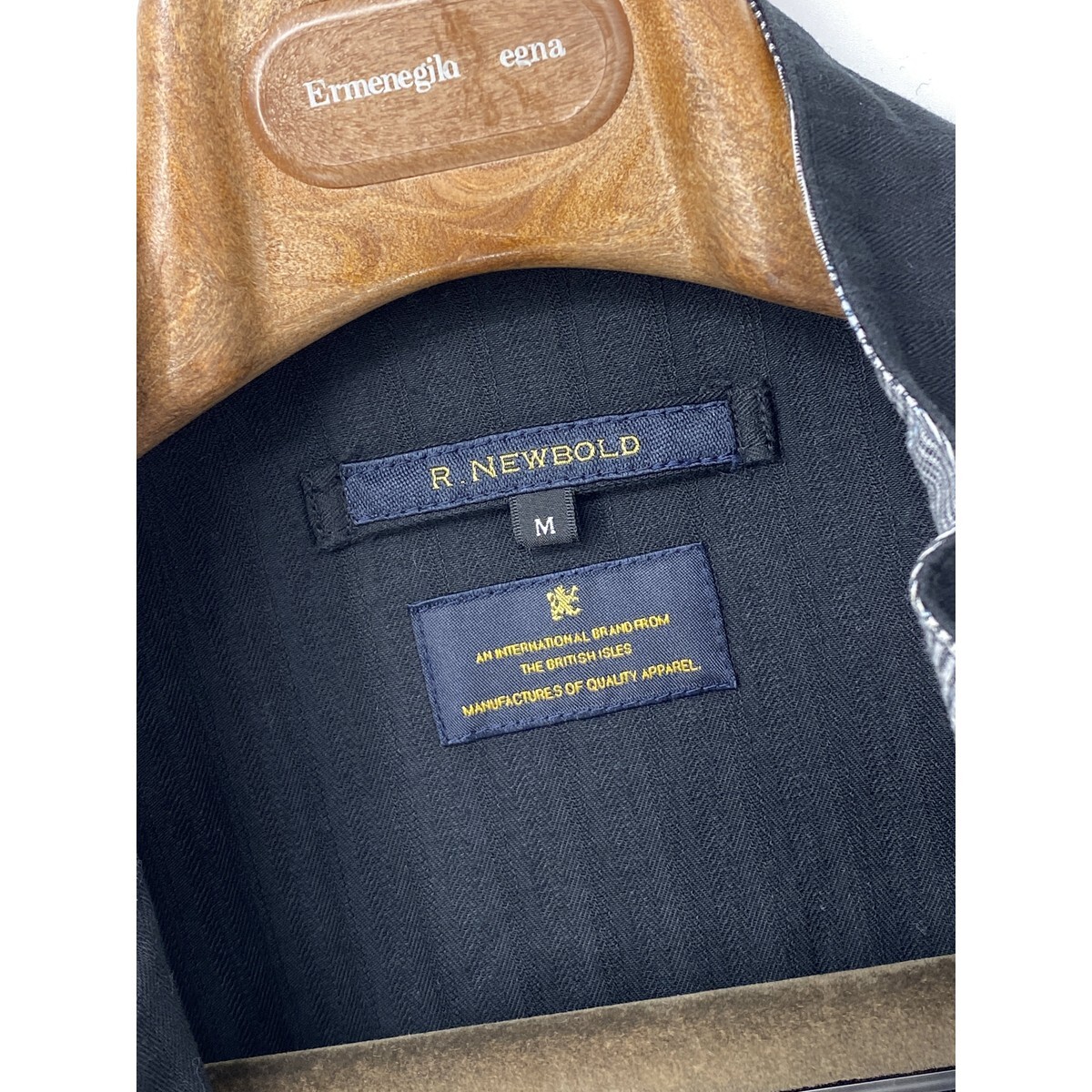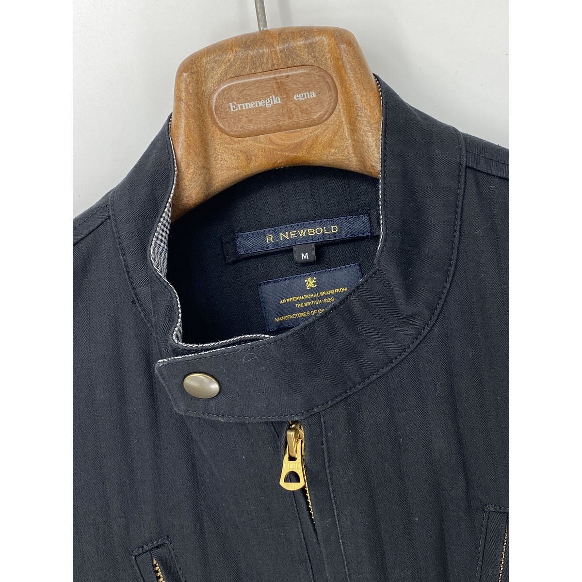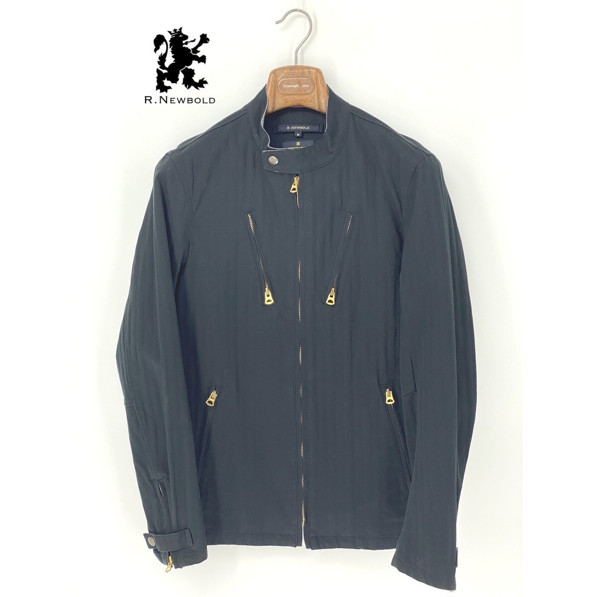 A8992/極美品 春夏 裏地無し R.NEWBOLD アールニューボールド コットン 長袖 ストライプ ハイネック ブルゾン ジャケット M 黒 メンズ