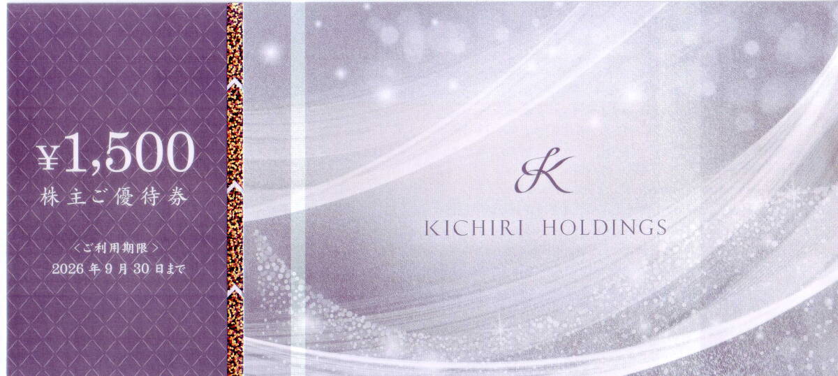 ご覧頂きありがとうございます。 商品掲載内容未確認によるトラブル防止のため、必ず最後まで掲載内容をお読み頂き、商品掲載内容にご同意の上、ご入札下さい。 ★最新 KICHIRI きちりホールディングス 株主ご優待券1500円券★送料無料条件有★です。 入札は、きちりホールディングス 株主ご優待券1枚(1500円券)当たりの金額でお願いします。 ◇◆商品説明◆◇ ★本券は、きちりが運営する店舗にてご利用頂けます。 ★本券1枚につき、ご飲食代金1500円の金券としてご利用頂けます。 ★ご利用枚数に制限はなく、1回のお会計時に何枚でもご利用頂けます。 ★他の割引券、割引プラン及びその他割引サービスとの併用は可能です。 ★有効期限は、2026年9月30日です。 ◇◆発送方法と送料について◆◇ ★送料は、落札者様のご負担でお願いいたします。基本発送は、普通郵便(定形郵便)にて発送させて頂きます。 但し、郵便事故による不着、あるいは郵送中の損害による返金、あるいは代替商品補償の責任は負いかねますのであらかじめご了承下さい。 ご不安な場合には、追跡記録可能または損害補償対象の発送方法をお奨めいたします。なお、郵便事故が発生した場合には、出来る限りのご協力はさせて頂きます。 また、郵便配達サービス変更に伴い、土曜日配達の中止、お届け日数の繰り下げが実施されています。普通郵便・特定記録郵便の場合、到着まで時間を要する場合がございます。 あらかじめご了承頂くとともに余裕をもったご対応を頂きますようにお願いいたします。 ●普通郵便(定形郵便)は110円(発送重量50gまで)(損害補償対象外)(土曜日・日曜日・休日配達中止) ●特定記録郵便は、普通郵便(定形郵便)+210円(追跡記録可能)(損害補償対象外)(土曜日・日曜日・休日配達中止) ●速達郵便は、普通郵便(定形郵便)+300円(損害補償対象外)(土曜日・日曜日・休日配達実施) ●書留郵便は、普通郵便(定形郵便)+480円(追跡記録可能)(損害補償対象)(土曜日・日曜日・休日配達実施) ●簡易書留郵便は、普通郵便(定形郵便)+350円(追跡記録可能)(損害補償対象)(土曜日・日曜日・休日配達実施) ●レターパックプラスは600円・レターパックライトは430円(追跡記録可能)(損害補償対象外)(土曜日・日曜日・休日配達実施) ●スマートレターは210円(損害補償対象外)(土曜日・日曜日・休日配達中止) ★発送方法については、普通郵便(定形郵便)・特定記録郵便・速達郵便・簡易書留郵便・書留郵便・ゆうパック(損害補償対象)(土曜日・日曜日・休日配達実施)・ クロネコ宅急便(損害補償対象)・レターパック(プラス・ライト)・スマートレター等、落札者様のご希望発送方法に対応いたします。 但し、ミニレター(郵便書簡)、クリックポストについては対応いたしかねますのであらかじめご了承ください。 ★即決価格でご落札された場合には、普通郵便(定形郵便)に限り出品者が送料を負担いたします。 また、即決価格の90%以上でご落札された場合には、普通郵便(定形郵便)に限り出品者が送料の50%を負担いたします。 但し、即決価格、あるいは即決価格の90%以上でご落札された商品を普通郵便(定形郵便)以外の発送方法でご希望される場合、送料は落札者様全額ご負担とさせて頂きます。 あらかじめご了承下さい。 なお、即決価格、あるいは即決価格の90%以上でご落札された商品と同梱発送をご希望される場合、送料は落札者様全額ご負担とさせて頂きます。あらかじめご了承下さい。 ◇◆備考・その他◆◇ ●誠実、迅速に対応いたしますので、よろしくお願いいたします。 ●自己紹介欄もどうぞご覧下さい。 ●他にも多数出品しておりますのでどうぞご覧下さい。 ●ご落札から48時間以内に落札者様情報のご連絡を必ずお願いいたします。 ご連絡を頂けない場合には、お取引の意思がないと判断させていただき、落札者様のご都合により即キャンセルとさせて頂きます。十分にご留意下さい。 また、落札者様情報のご連絡があるまでは、取引メッセージによるご質問等には一切ご回答いたしかねますのであらかじめご了承下さい。 ●落札者様情報のご連絡を頂いた後、落札者様から何もご連絡がなく、ご落札から72時間以内にご決済頂けない場合には、 落札者様のご都合により即キャンセルとさせて頂きます。十分にご留意下さい。 また、落札者様からご連絡があった場合でも、かんたん決済支払期限を超過した場合は、落札者様のご都合により即キャンセルとさせて頂きます。 なお、この場合、出品者にて商品を削除させて頂く際、落札者様の評価に対して「非常に悪い」を付けさせて頂きます。ご了承の上、十分にご留意下さい。 なお、この場合には、出品者への評価は一切不要です。ご遠慮下さい。但し、落札者様から、その他のお支払い方法をご提示頂いた場合にはその限りではありません。 但し、その他のお支払い方法のご提示は、かんたん決済支払期限前日の23:00までとさせて頂きます。 ●同梱発送については対応可能です。た