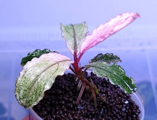 Bucephalandra sp.”pink variegata 水上株 ブセファランドラ sp ピンクバリエガータ 1株の出品です。