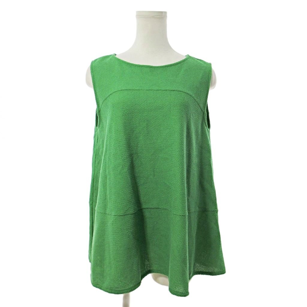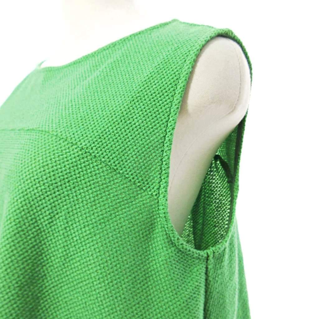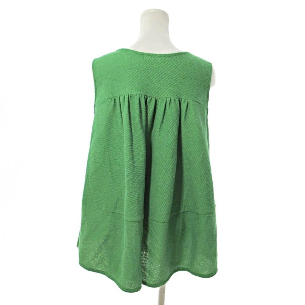 デミルクス ビームス Demi-Luxe BEAMS 美品 ラッセルメッシュ ノースリーブ ニット カットソー フレア ギャザー タンクトップ 緑 0925 レディース