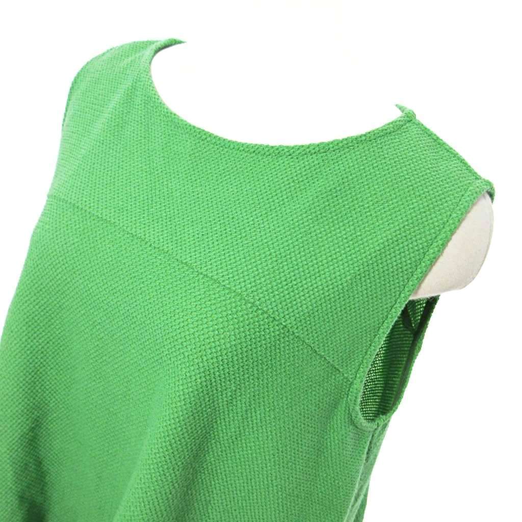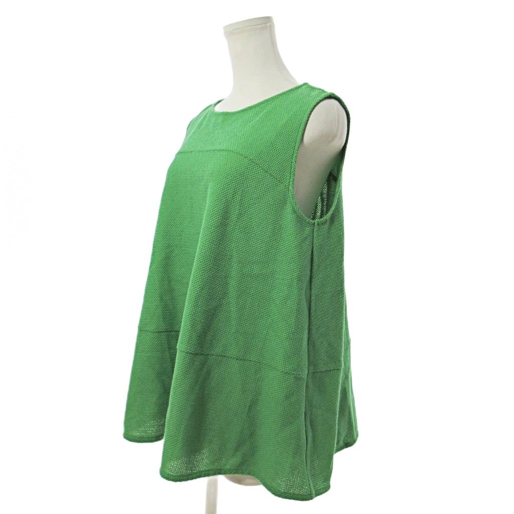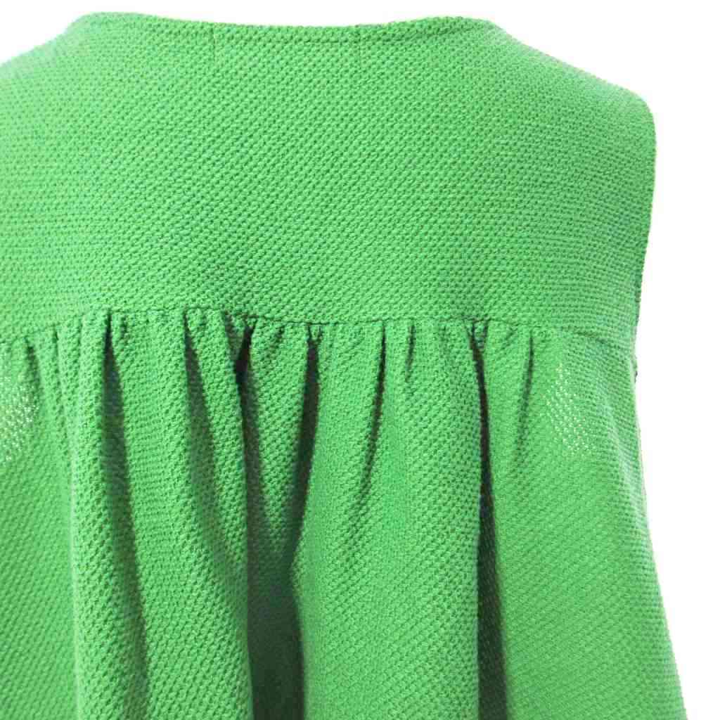 デミルクス ビームス Demi-Luxe BEAMS 美品 ラッセルメッシュ ノースリーブ ニット カットソー フレア ギャザー タンクトップ 緑 0925 レディース