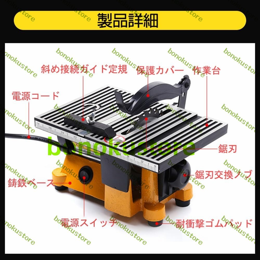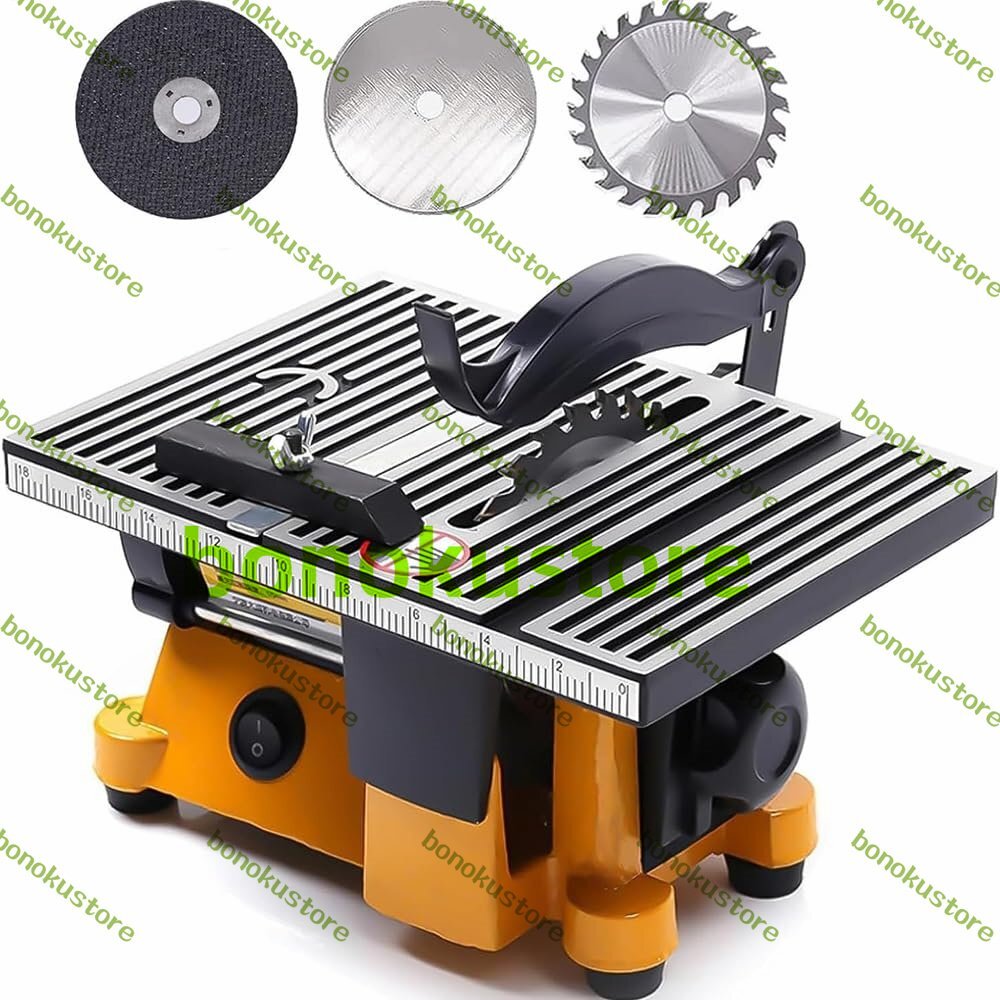 ミニテーブルソー 【卓上型】卓上丸鋸盤 精密切断機(金属/プラスチック/木材/基板対応)最大切断厚15mm マイターガイド付属 3枚の鋸刃付き