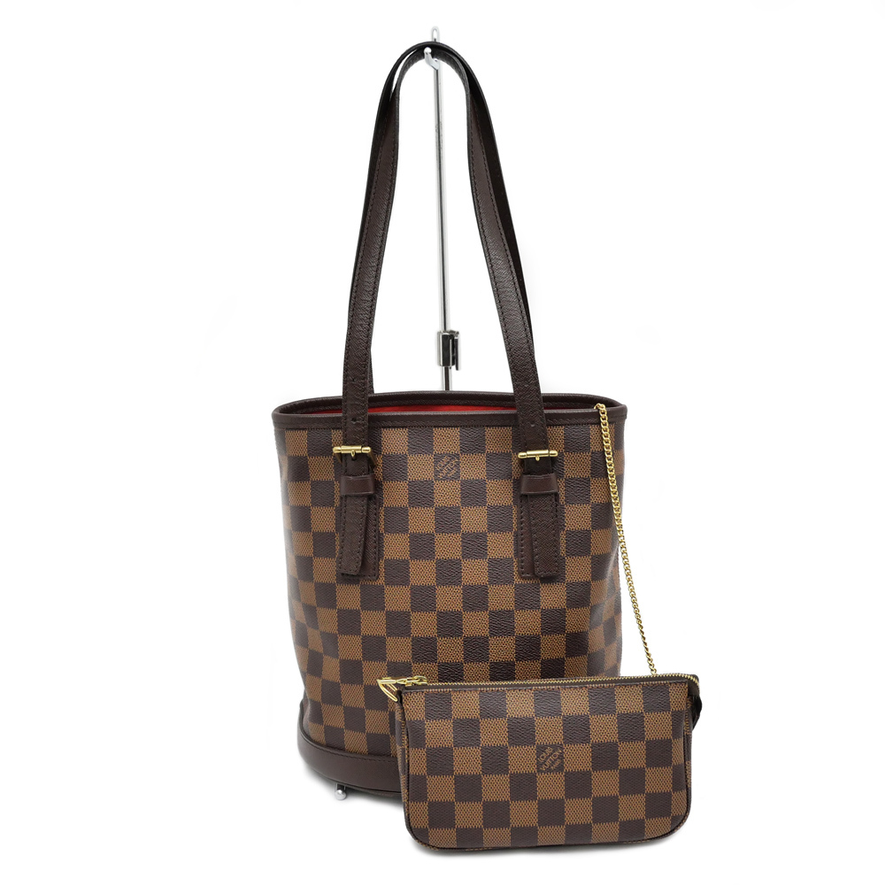 【名東】ルイヴィトン ダミエ マレ N42240 ポーチ付 トート バッグ ブラウン レディース