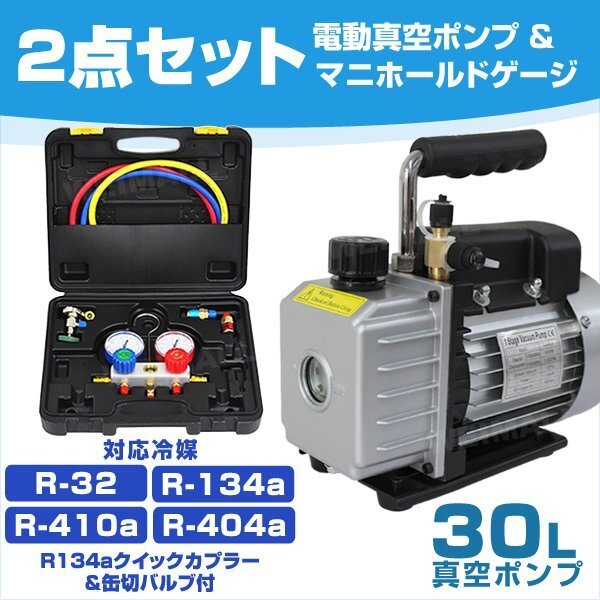 | [マニホールドゲージ] 超お得なマニホールドゲージ+真空ポンプのセット商品です マニホールドゲージ 【仕様】 対応冷媒R134a R32 R410A R404A 真空ポンプ 【仕様】 ローター方式:シングルステージ 到達真空度:75ミクロン 排気速度:30l/min(50Hz) 36l/min(60Hz) 電源:AC100V 50Hz/60Hz 消費電力:120W 回転数:1440rpm(50Hz) 1720rpm(60Hz) 吸気口径:1/4フレア(UNF7/16-20) サイズ:110W×250D×235H 重量:約6kg 逆流防止:あり オイル封入量:160ml 【セット内容】 ○エアコンガスチャージ 2バルブゲージ付マニホールド(取付用フック付)×1 チャージングホース青赤黄(約900mm)×3 R134a用 高圧用クイックカプラー ×1 R134a用 低圧用クイックカプラー ×1 R410aアダプター ×1 専用缶切りバルブ付 専用ケース付 日本語取扱説明書 ○電動真空ポンプ 本体 ×1 真空ポンプオイル ×1 英文取扱説明書 ■オプション商品■ □マニホールドゲージ用ホース3本セット 150cm(R-12,R-22,R-134a,R-404,R-502) □マニホールドゲージ用ホース3本セット 90cm(R-410a専用) □バルブ式クイックカプラー R134a □クイックカプラー R134a □マニホールドゲージ用変換アダプター フレアサイズオス1/4メス5/16 □アルミ製パイプベンダー □ダブルフレアリングツールキット |