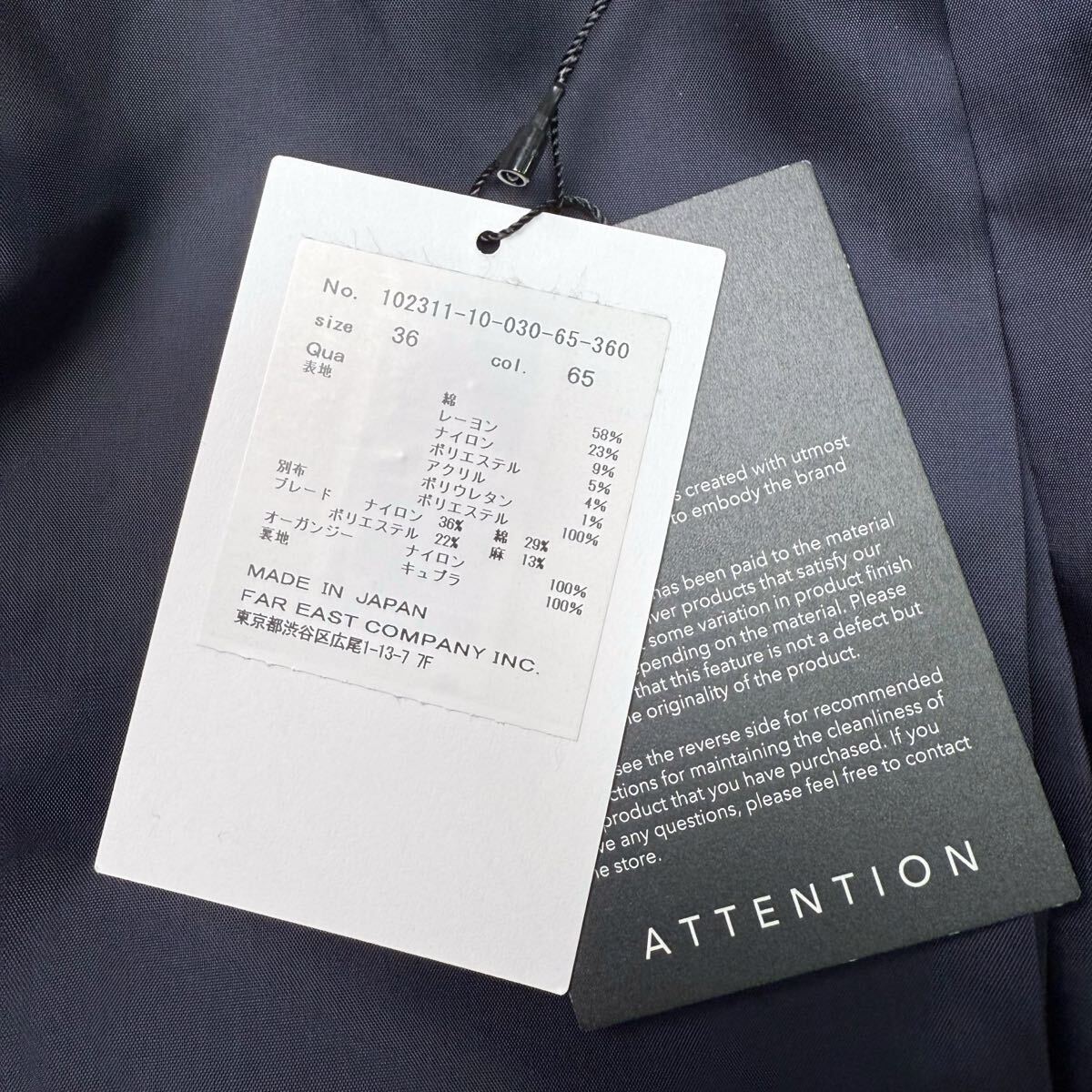 表地:綿67% レーヨン16% ナイロン10% ポリエステル6% ポリウレタン1% 別布:ポリエステル100% ブレード:ナイロン36% 綿29% ポリエステル22% 麻13% オーガンジー:ナイロン100%