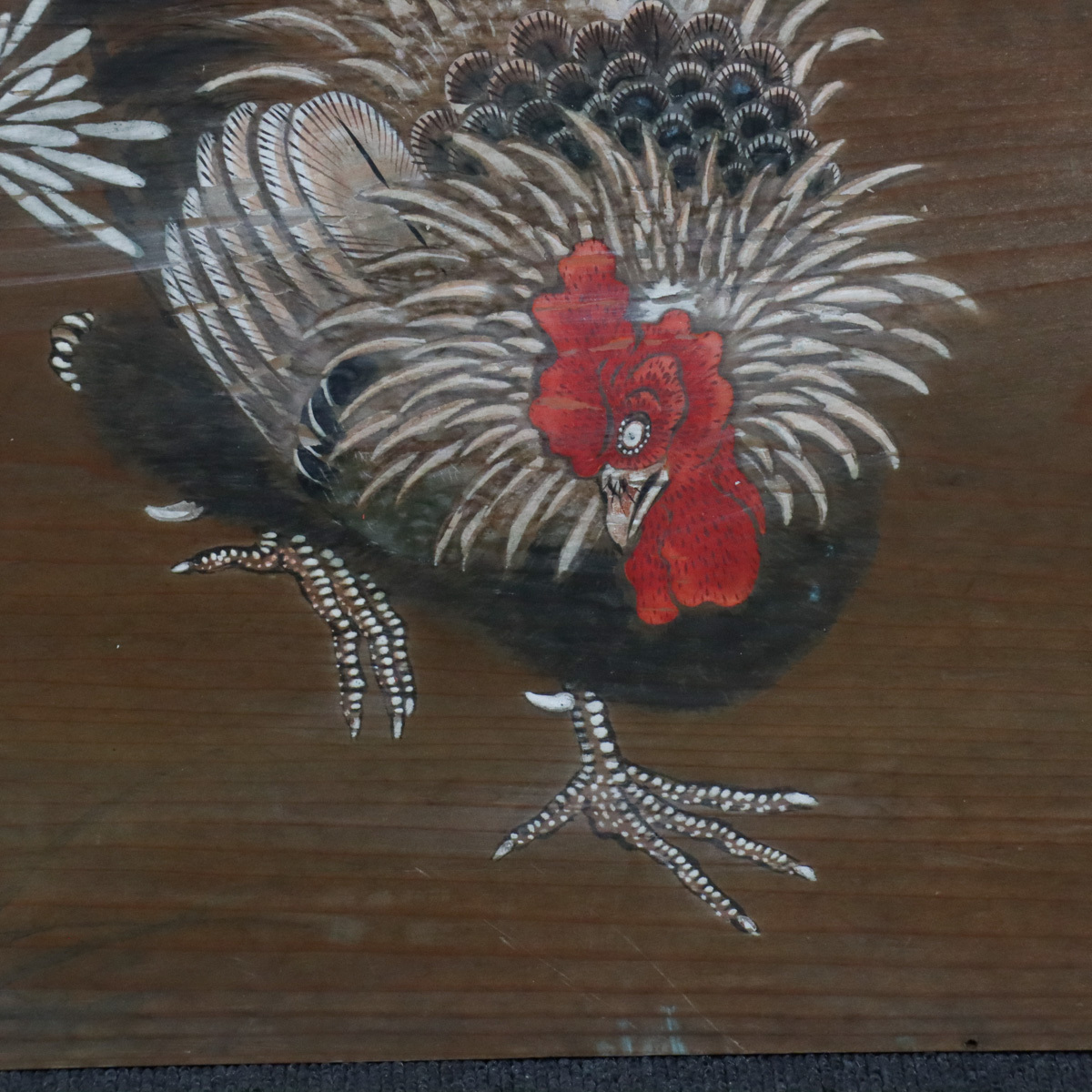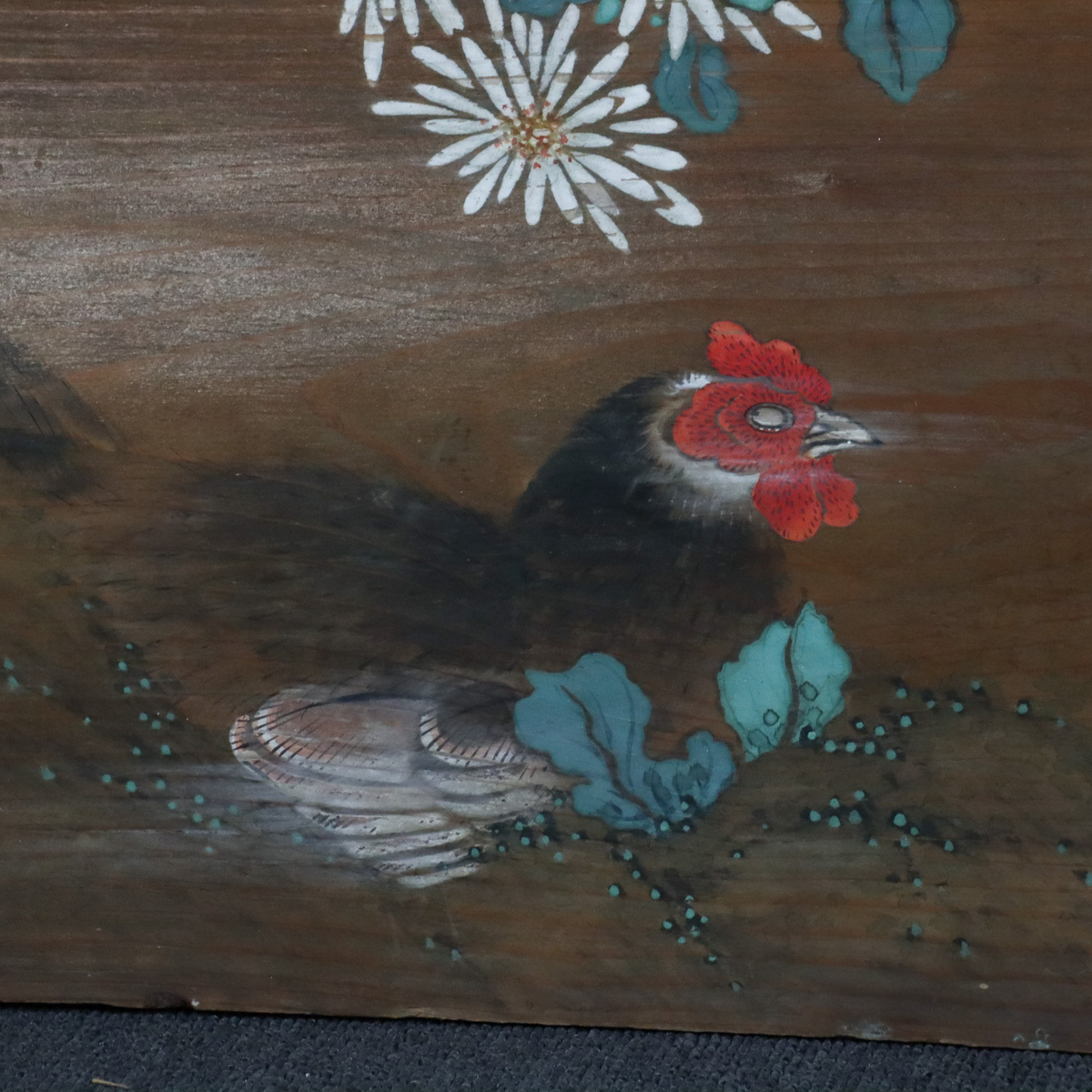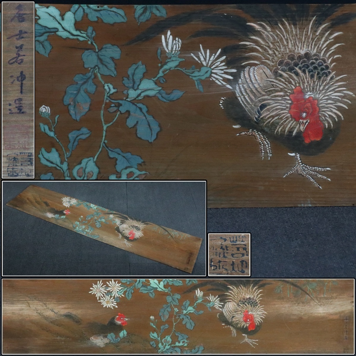 【宙】模写 伊藤若冲 鶏図 板絵 日本画 幅137.5cm 旧家蔵出品 江戸時代中期の奇想派絵師 彩色と細密描写が冴える鶏図 [D]9T12.hi.3.2.(220)