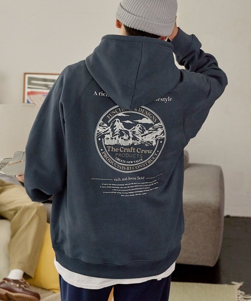 参考商品名:【THE CRAFT CREW PRODUCTS】ヘビーウェイトファンクショナルUSAコットン ビッグシルエット バックプリントラグランスリーブプルオーバーパーカー / 吸水速乾