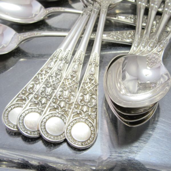 付属の12本のスプーンは両面模様のベネチアンパターンです(こちらは英国製です)。