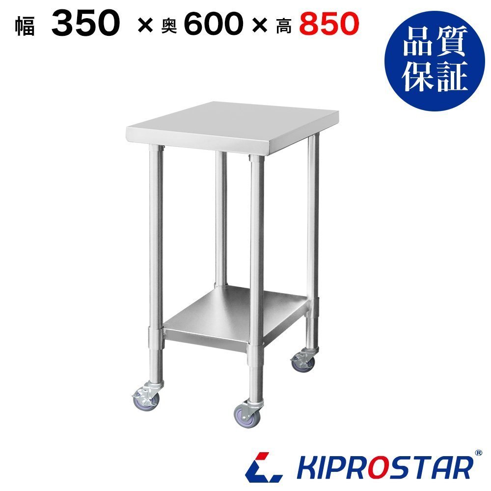 | 即納 業務用ステンレス作業台 キャスター付き 調理台 400×600×850 板厚1.2mmモデル |