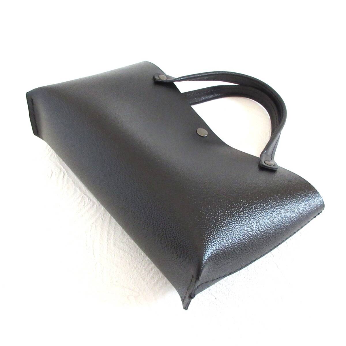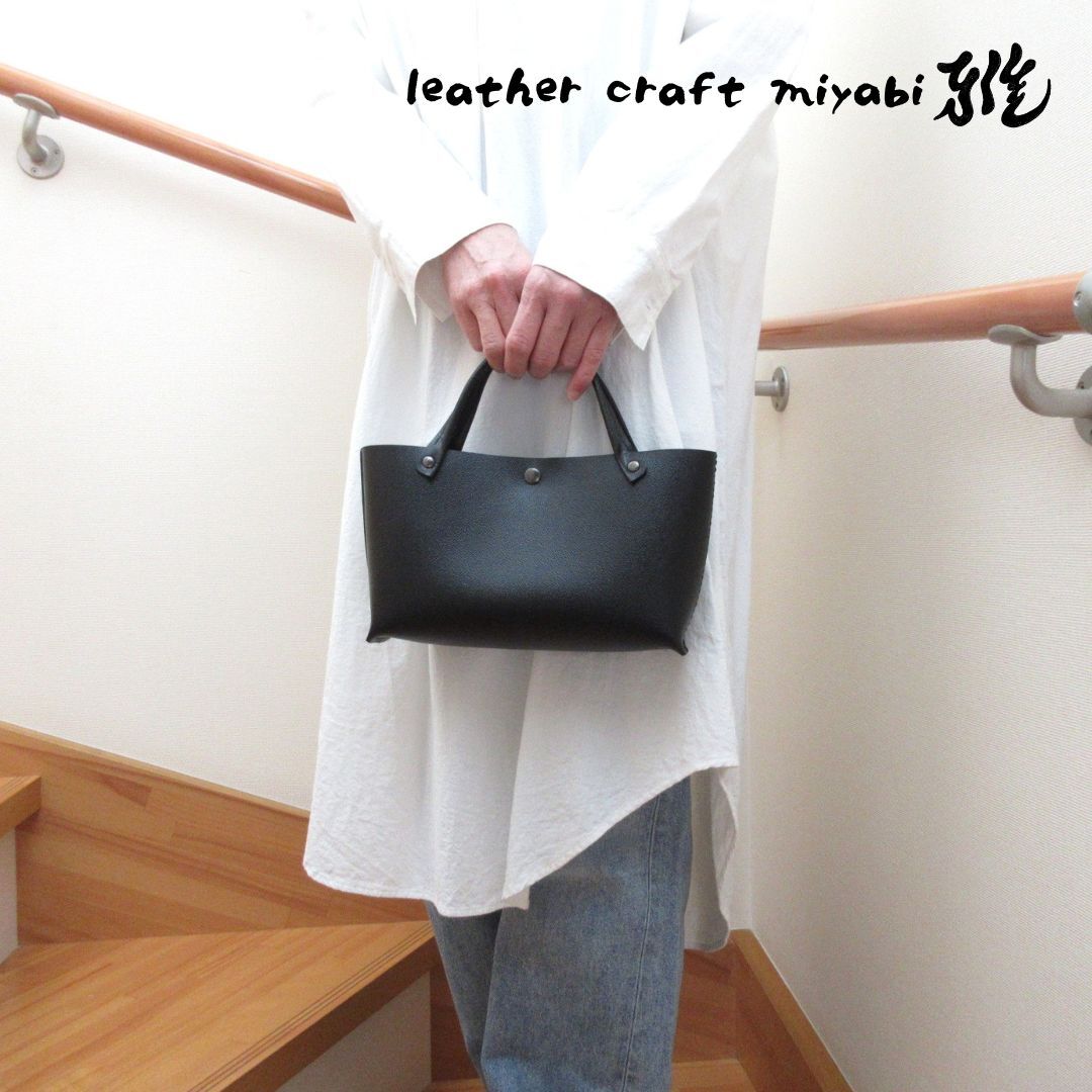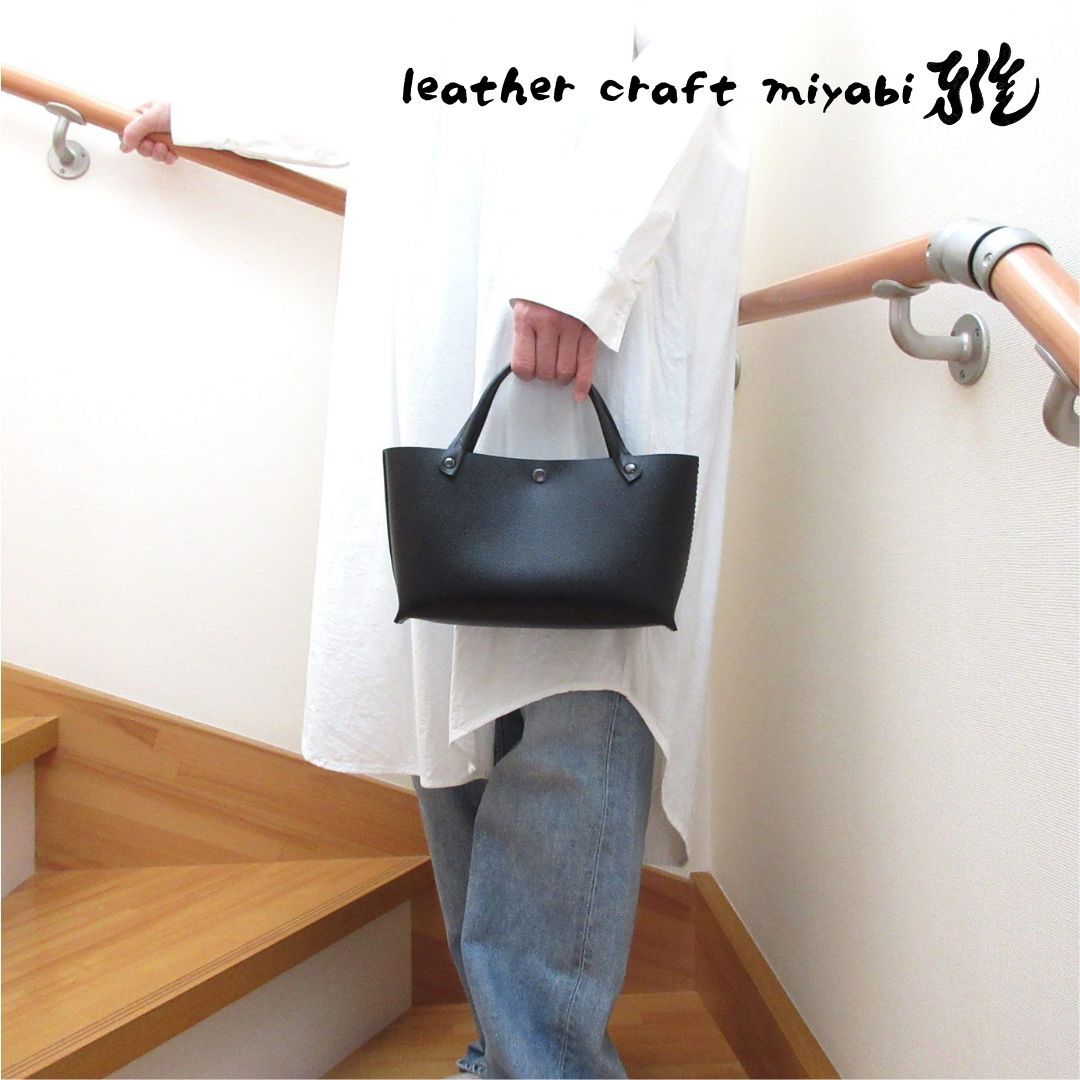 【L.C 雅】贅沢な手縫い仕上げ♪《牛革》新シリーズ☆レクタングル☆ミニトート・ブラックシュリンク0630