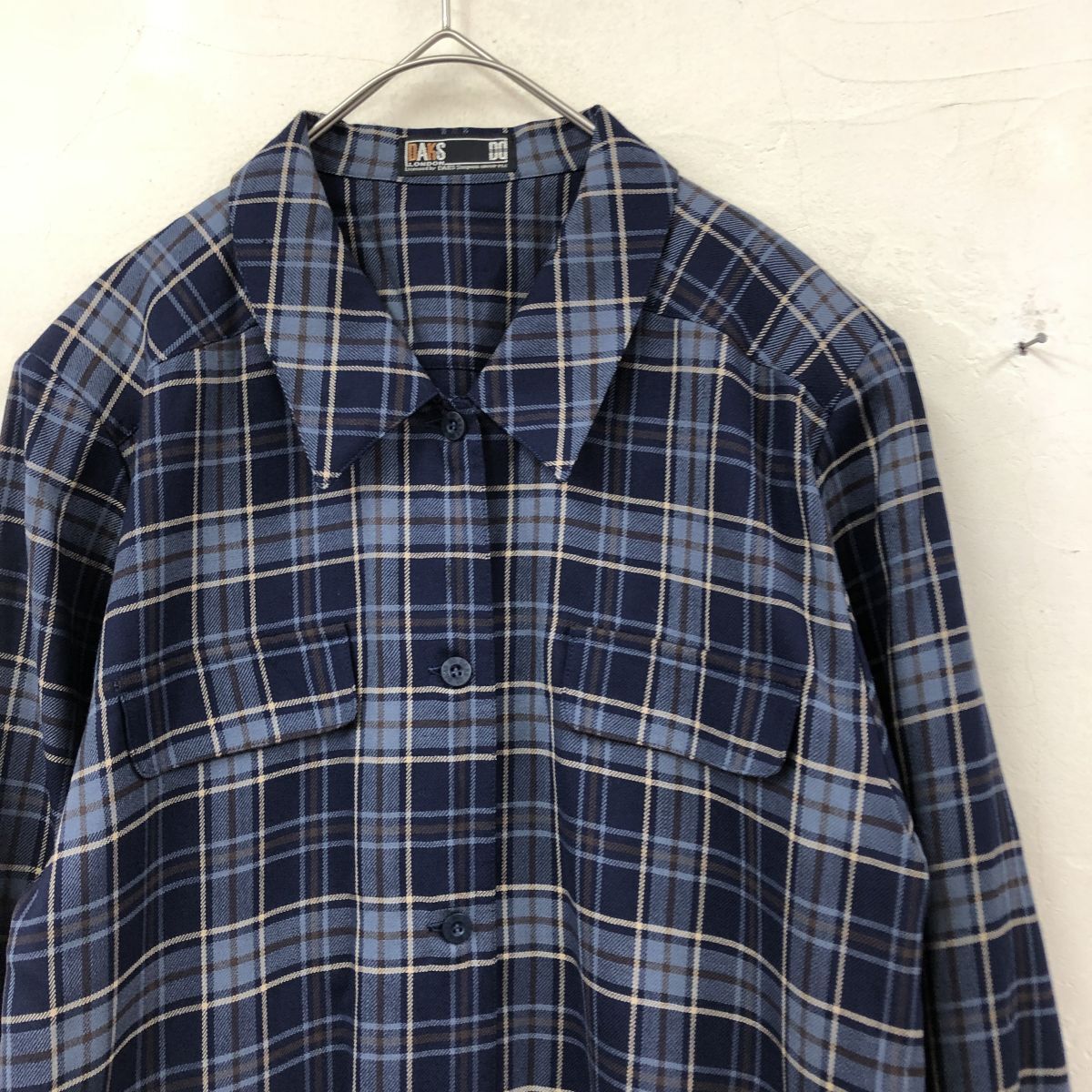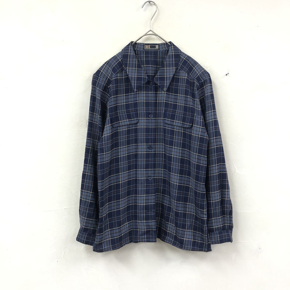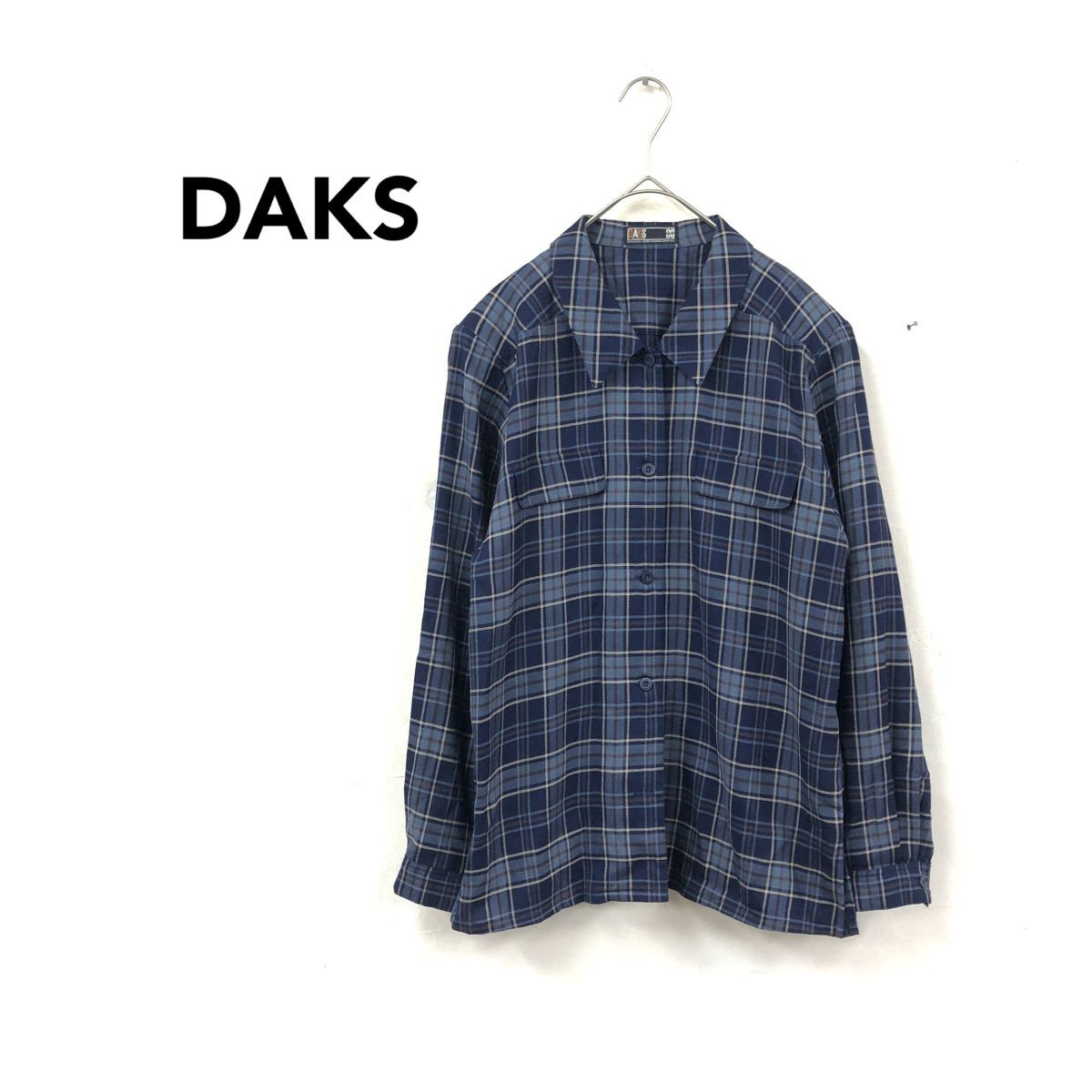 2K3169-Y-N◆DAKS ダックス 長袖スクエアシャツ 両胸ポケット サイドスリット チェック レディース カジュアル ◆size11R ネイビー 毛