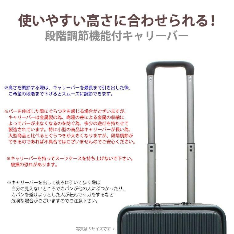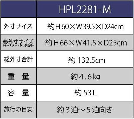 商品の製造過程や保管時にできた細かな傷や目立たない汚れがある可能性があります。 ご使用に際しては問題ございません。気になる方は入札をお控えください。 アウトレット品にご理解を頂ける方の入札をお待ちしております。 便利なフロントオープンポケットを搭載したジッパースーツケース≪エイチプラス/HPL2281≫ 『サスペンション&ストッパー付き双輪キャスター』や2Wayで使える『TSAロック付シフレロック』など、充実の機能で快適な旅をサポートします。