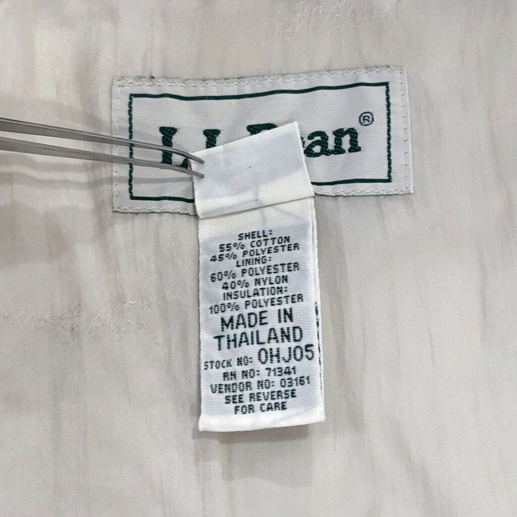 【商品管理番号】 V3632 【ブランド】 L.L.Bean/エルエルビーン 【サイズ】 LARGE 【実寸サイズ】 肩幅:約50cm 着丈:約75cm 身幅:約63cm 袖丈:約57cm 【主な素材】 表地 : コットン 裏地 : 13897 中綿 : 13897 【色】 アイボリー 【仕様】 アウトドア 【状態】 汚れ:肩、袖、胸、腹部、背中 キズ:袖、背中 |