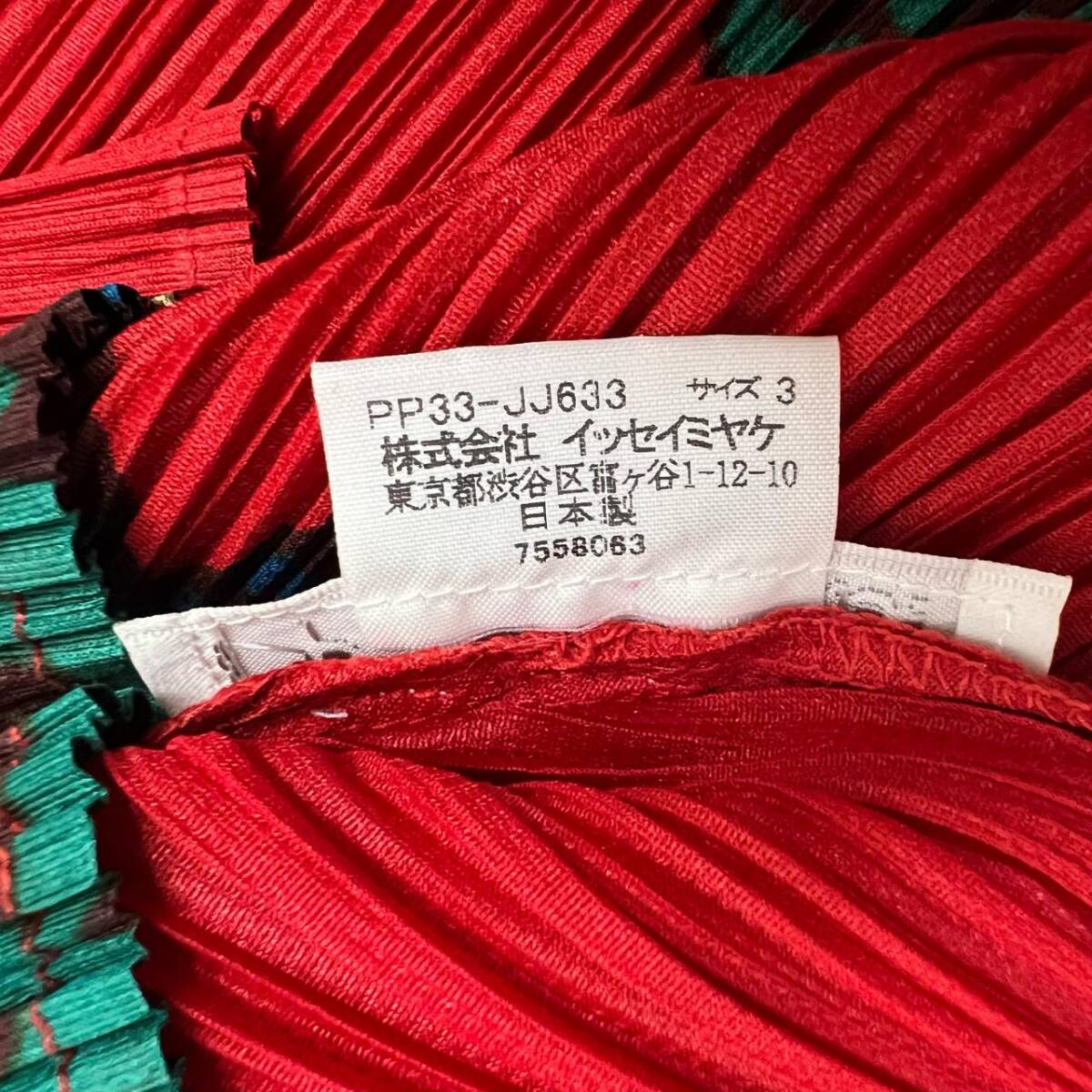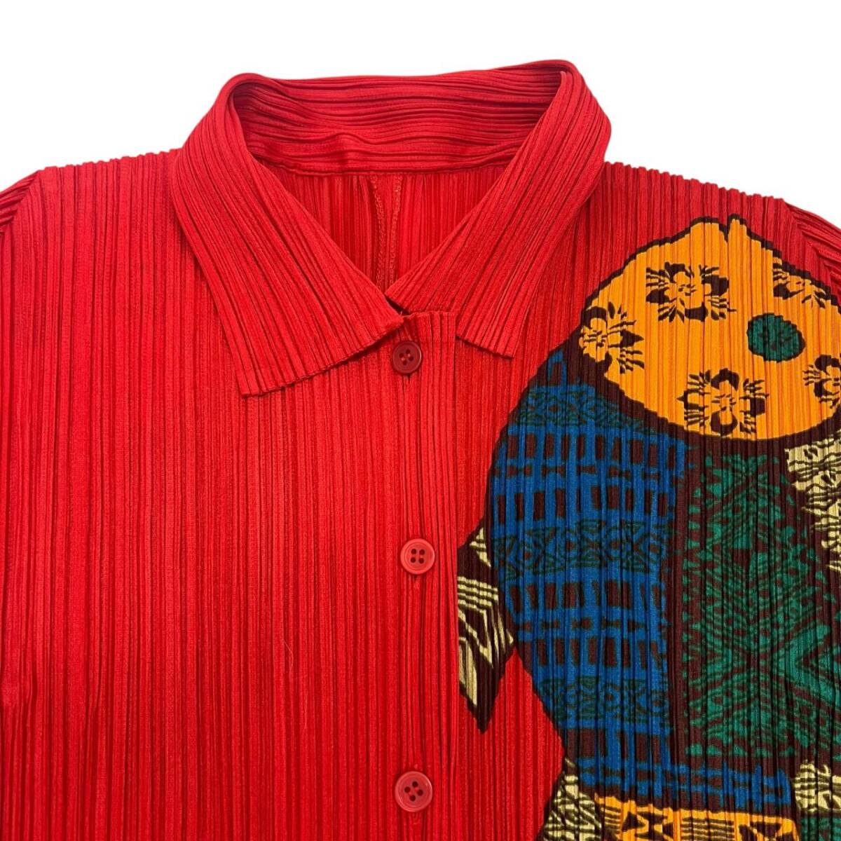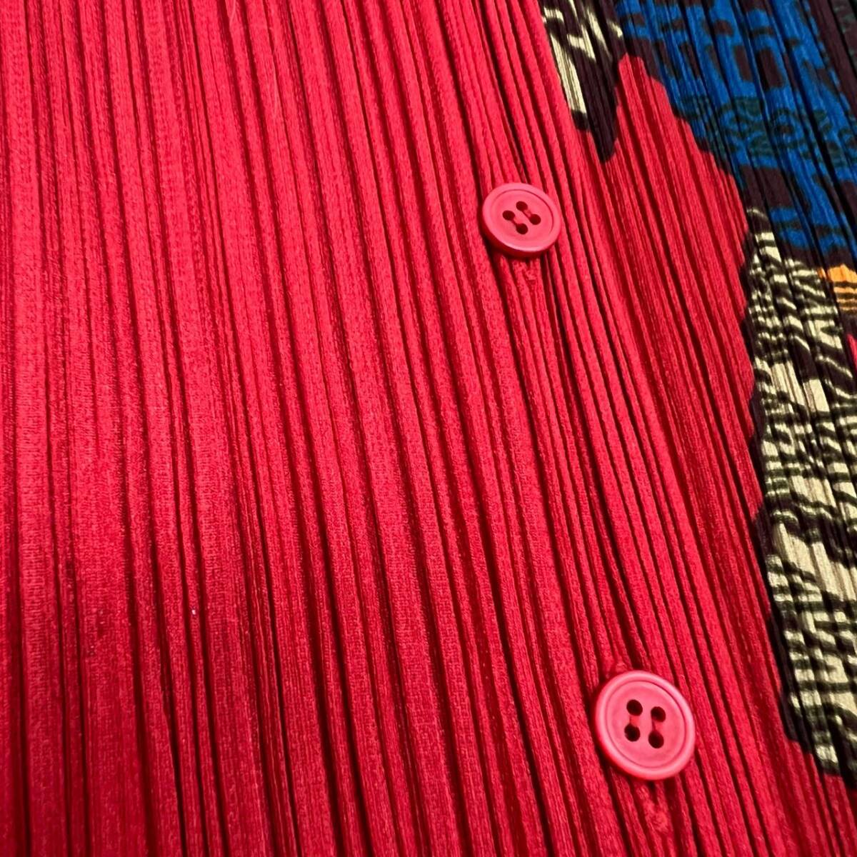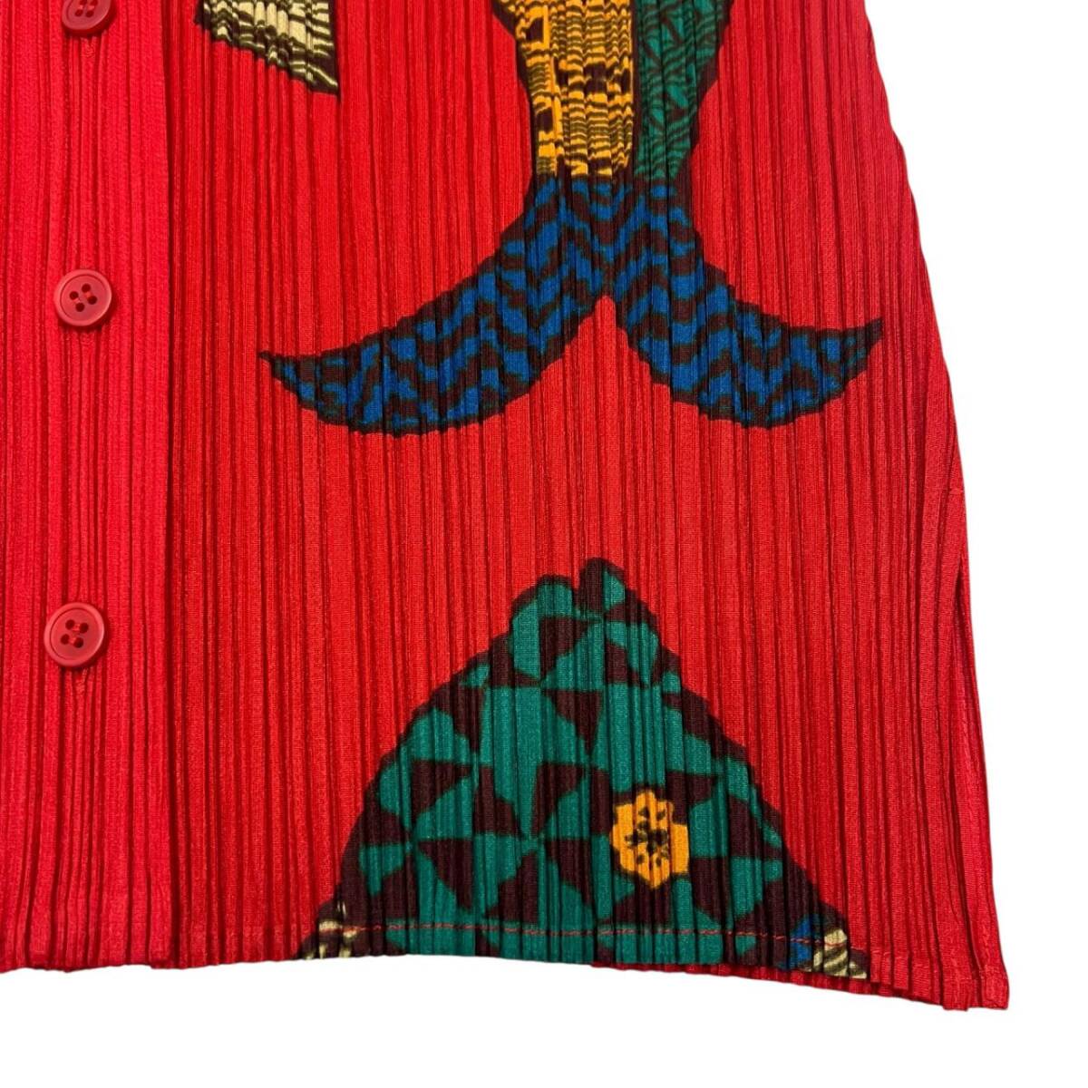 | ISSEY MIYAKE イッセイミヤケ プリーツプリーズ PP33-JJ633 レッド系 魚 半袖 カーディガン サイズ3 半袖シャツ レディース |