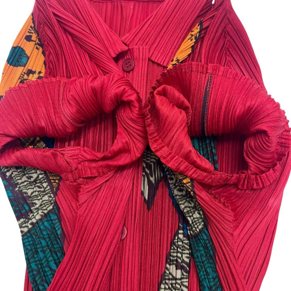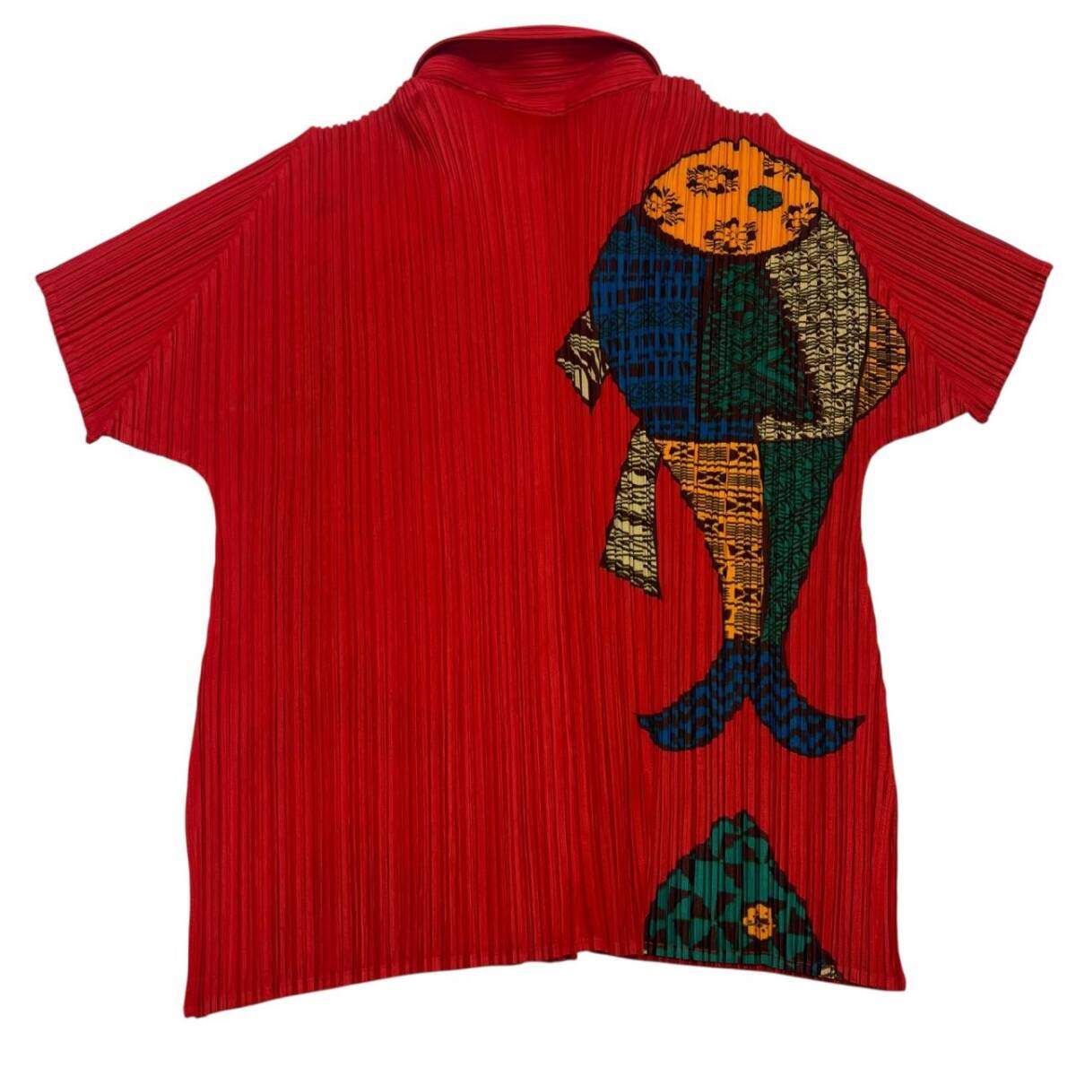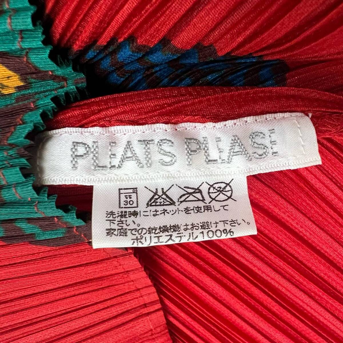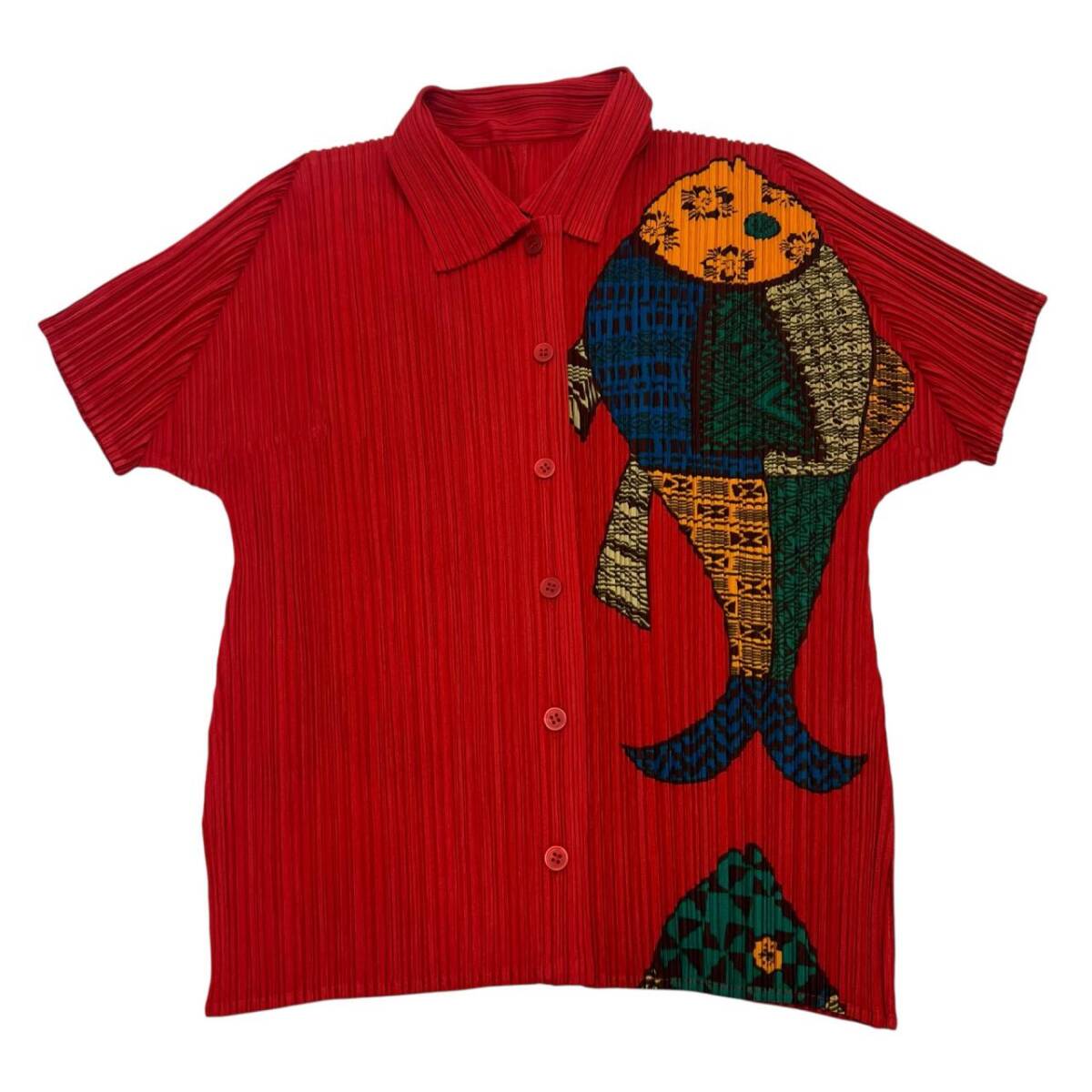 | ISSEY MIYAKE イッセイミヤケ プリーツプリーズ PP33-JJ633 レッド系 魚 半袖 カーディガン サイズ3 半袖シャツ レディース |