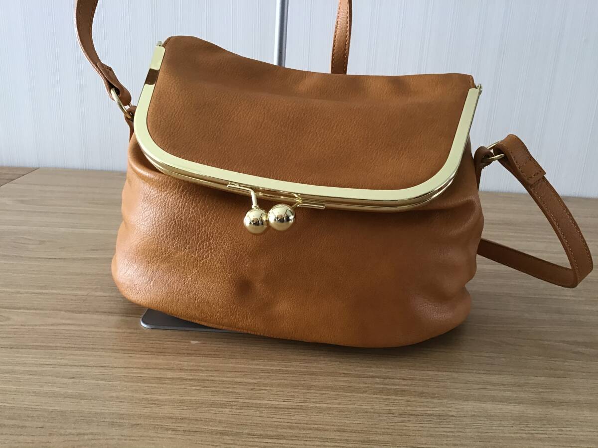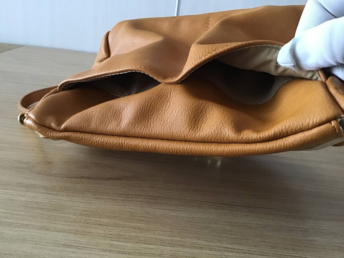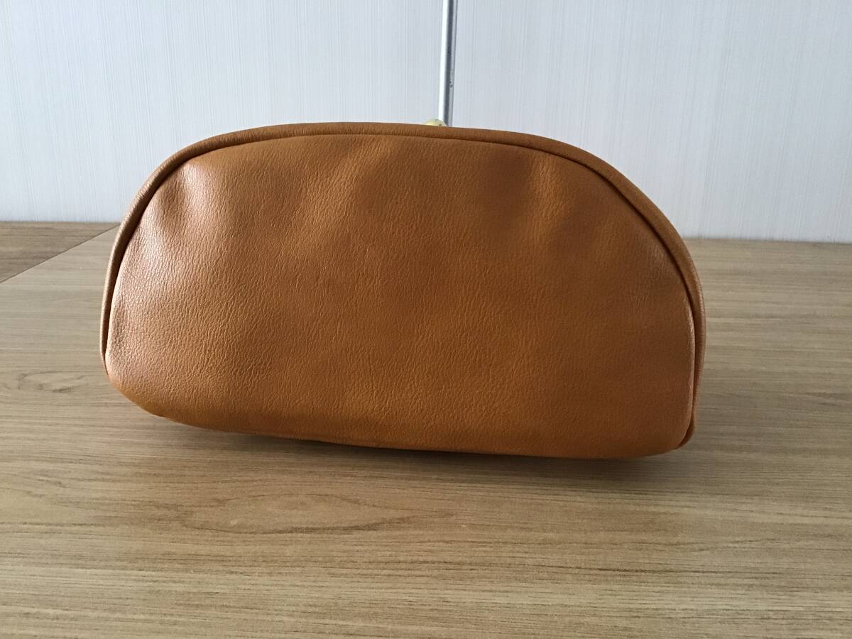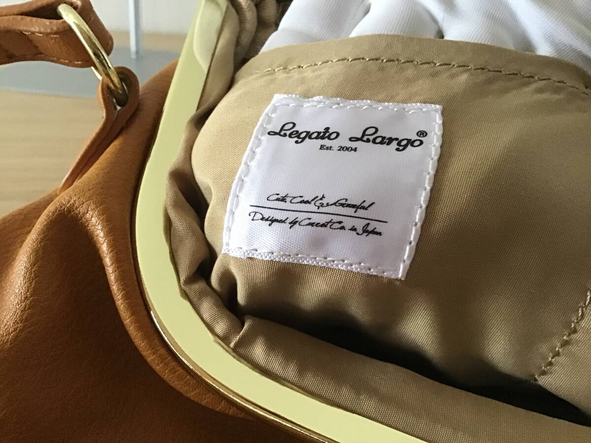 サイズ:縦16.5cm、横底で26cm、まち底で14cm、ストラップは調節穴9個で、長さ調節可能、開口部はがま口、中にオープンポケット2、外側背面にオープンポケット2
