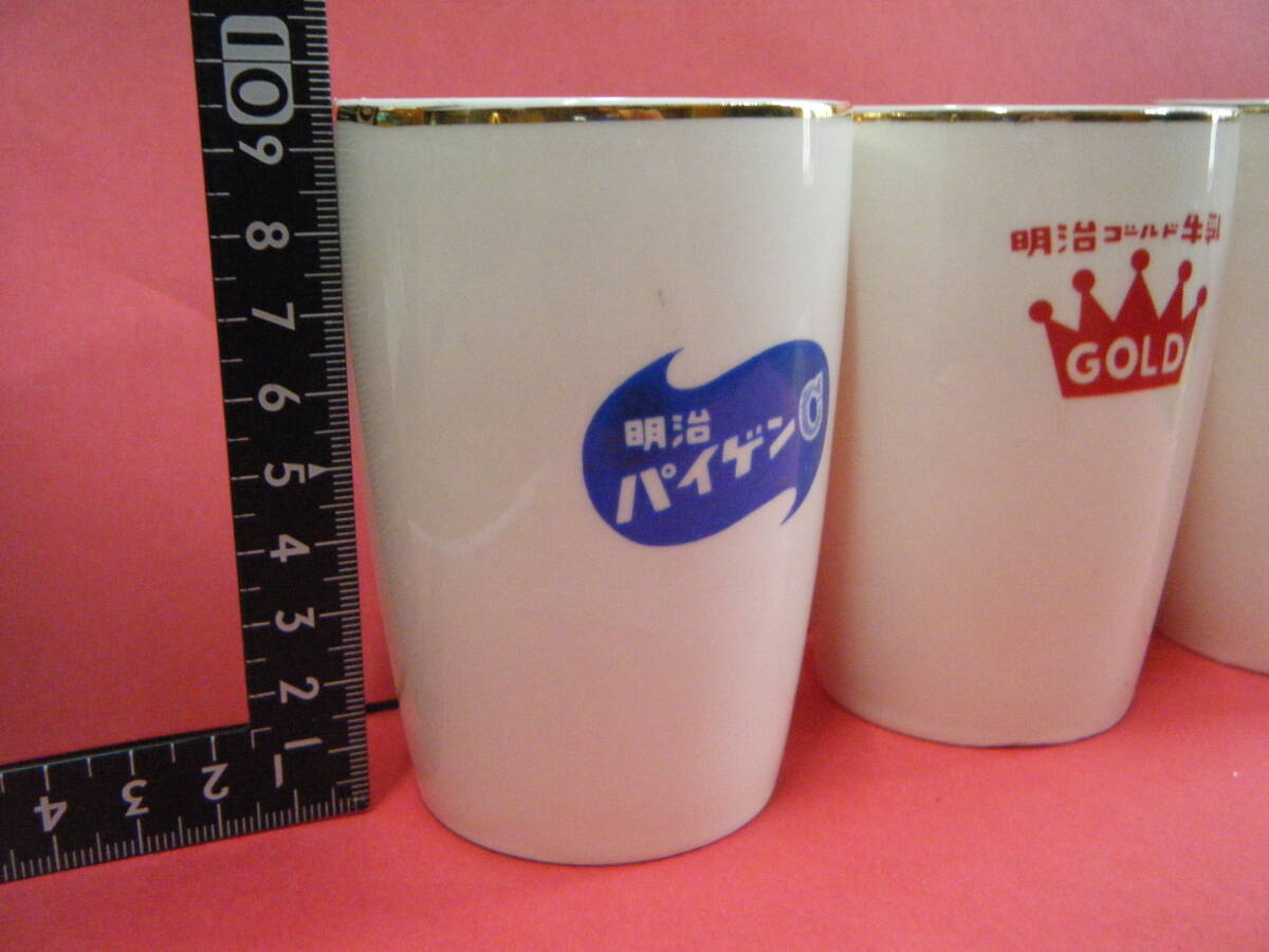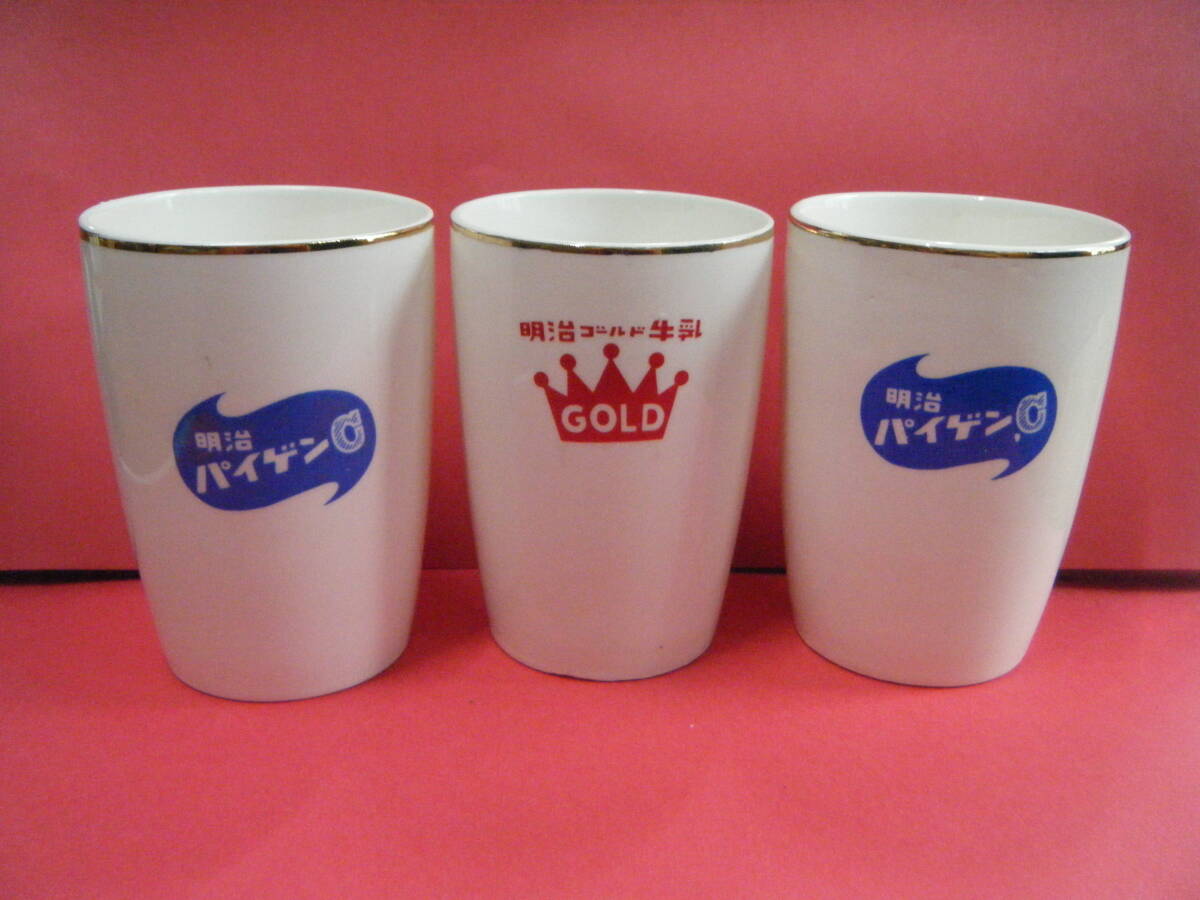 コップ・グラス・カップ  明治ゴールド牛乳1個・パイゲンC2個 計3個セット 陶器製 :昭和レトロ