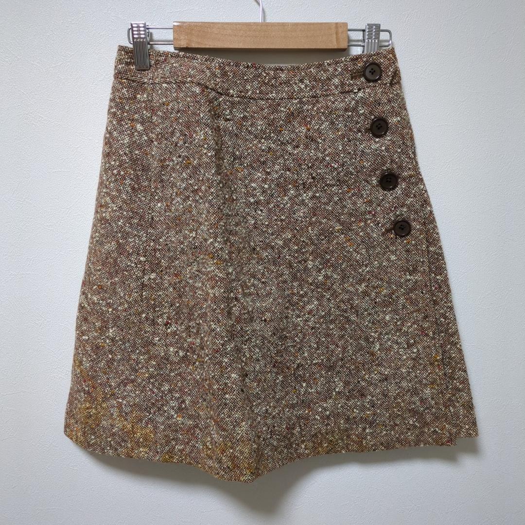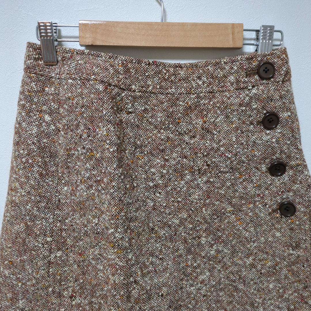 hanasaki(ONE)ツイード巻スカート*ひざ丈*レトロ*ウール混*Aライン