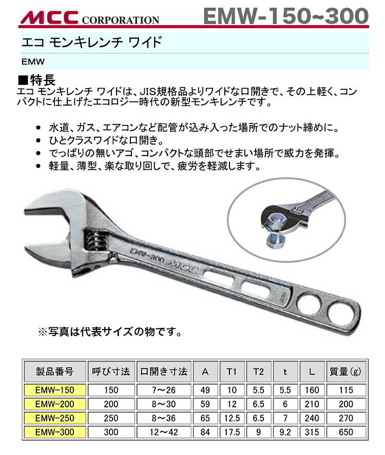 【オススメ】【新着商品】〈MCC〉エコモンキーレンチワイド EMW-200
