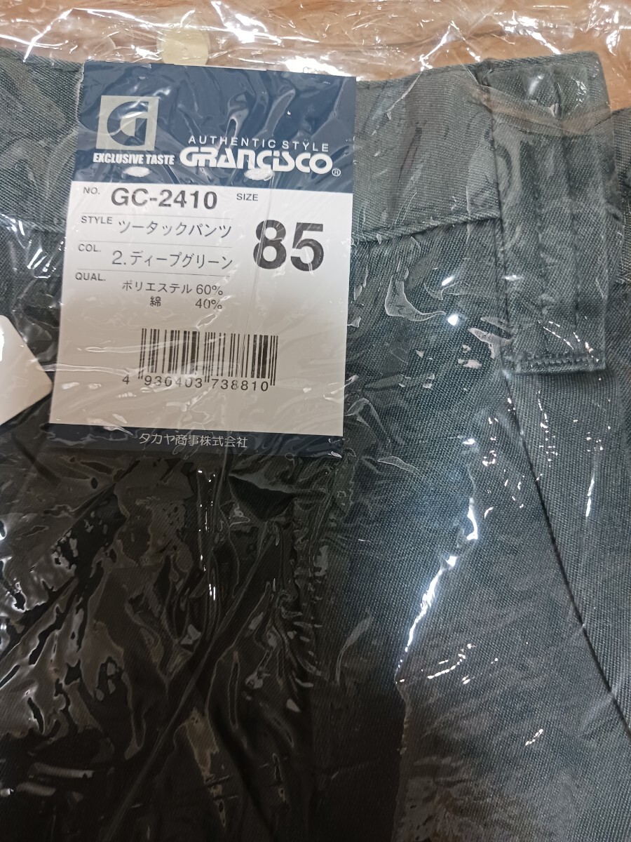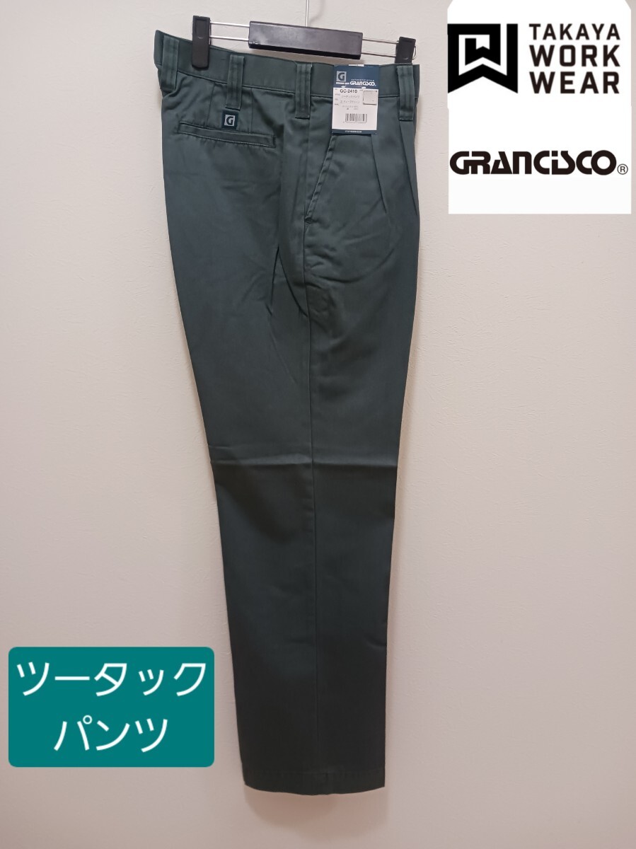 5451 TAKAYA GC-2410|秋冬 ツータックパンツ|ディープグリーン|W85㎝|新品未使用|タカヤ GRANCISCO|作業ズボン|綿ポリ混紡|スラックス