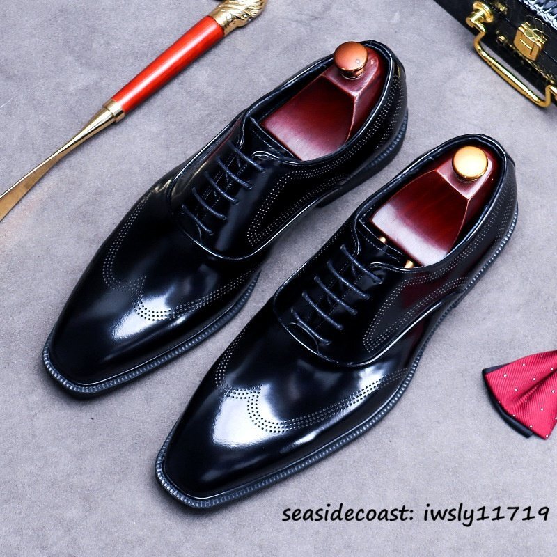 最上級★牛革 メンズシューズ 本革 レザーシューズ 職人手作り 紳士靴 革靴 ビジネスシューズ 冠婚葬祭 超希少 フォーマル ブラック 26.5cm